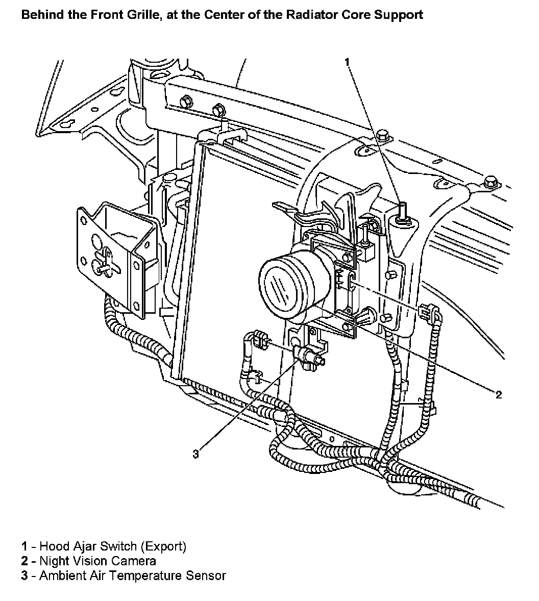 Behind the Front Grille, At the Center of the Radiator Core Support