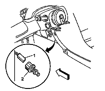 5. Disconnect the electrical connector (1) from the auxiliary temperature sensor (2) and remove the auxiliary air temperature sensor.