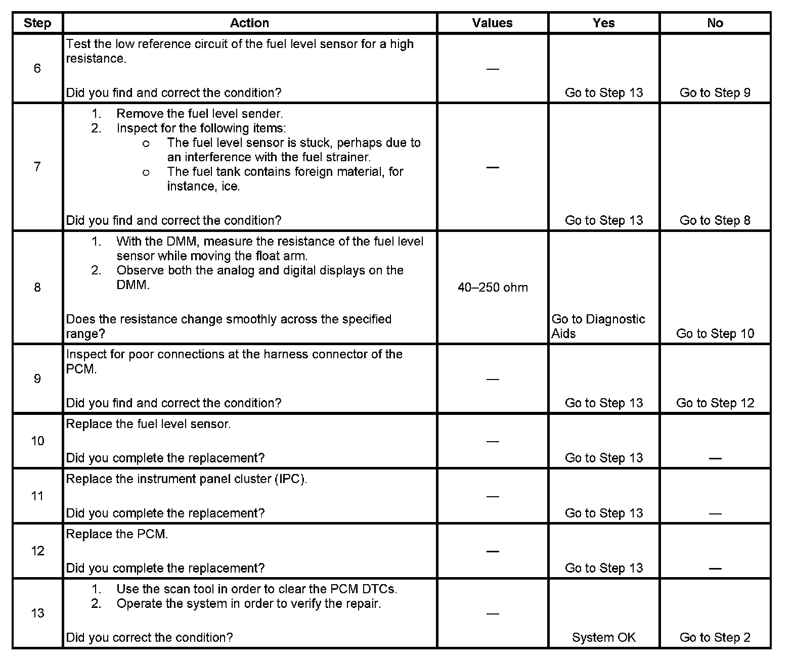 3. This step tests for a high resistance in the signal circuit and the low reference circuit of the fuel level sensor.