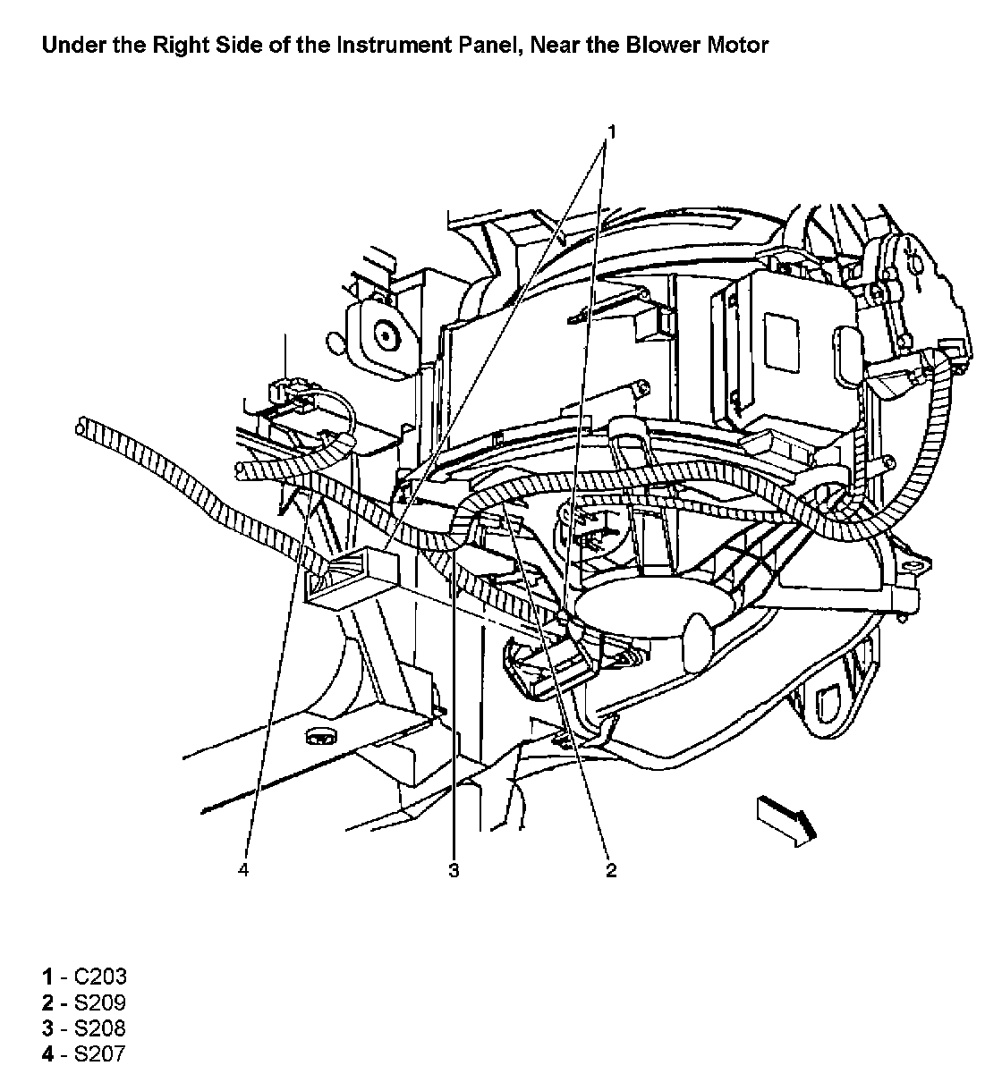 Under The Right Side Of The Instrument Panel, Near The Blower Motor: