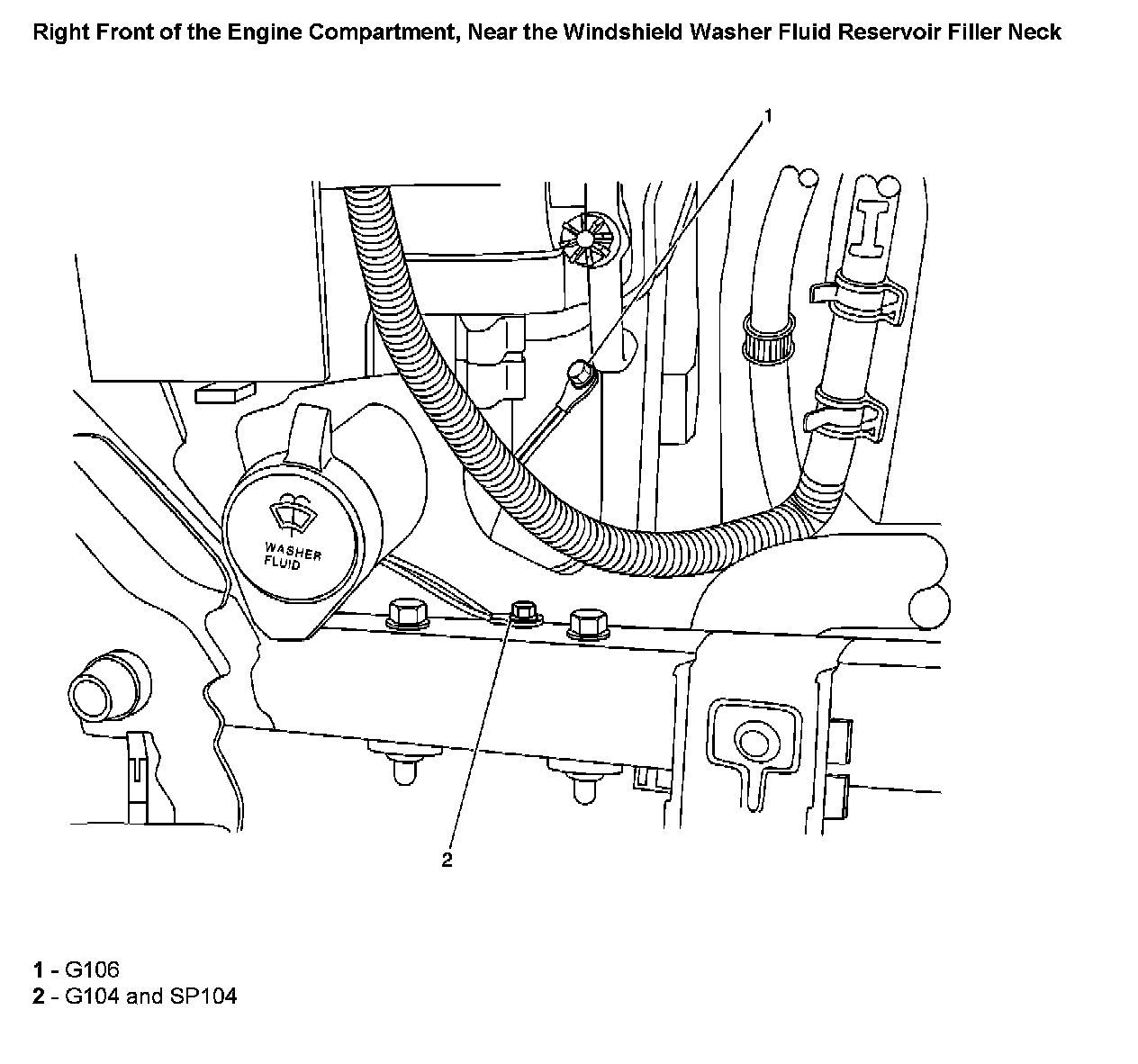 Right Front Of The Engine Compartment, Near The Windshield Washer Fluid Reservoir Filler Neck: