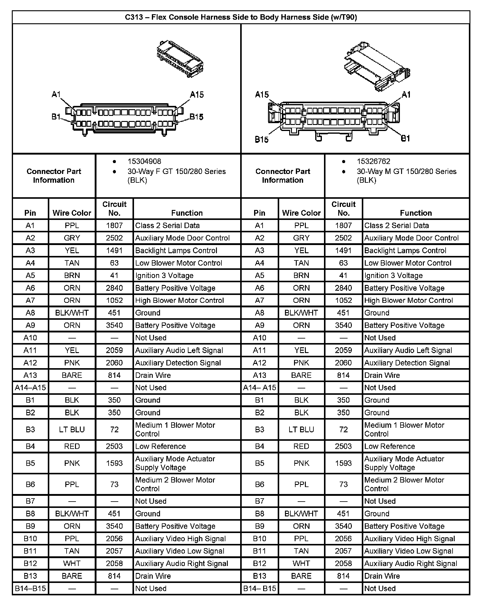 C313 - Flex Console Harness Side To Body Harness Side (With RPO Code T90):