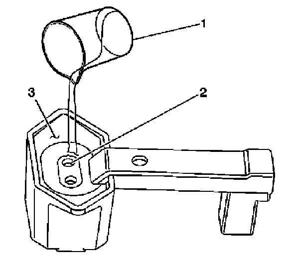 9. Pour the fuel sample from the beaker (1) into the J 44175 fuel composition tester, until the level of the fuel is at the top of each fuel test port (2).