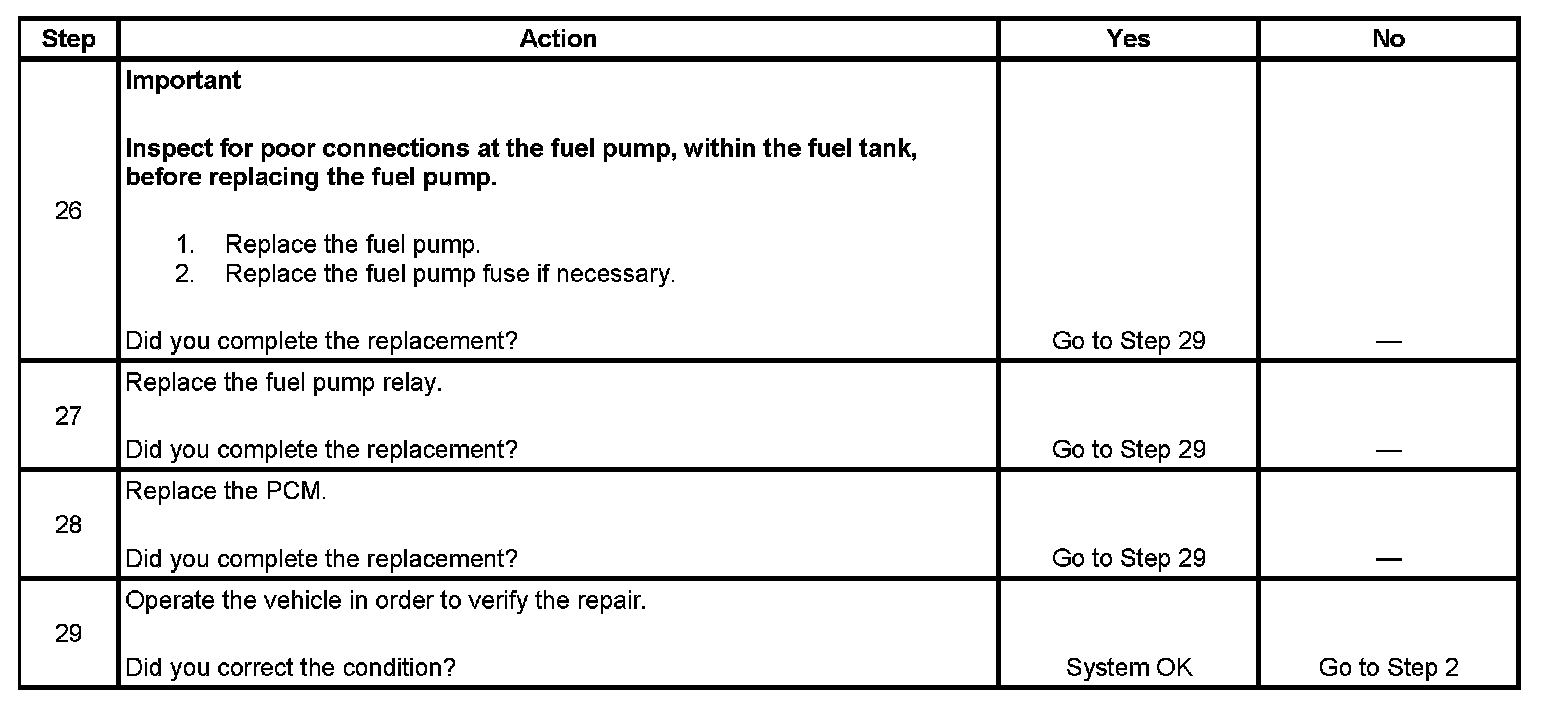17. This step tests for an open or high resistance in the fuel pump ground circuit.