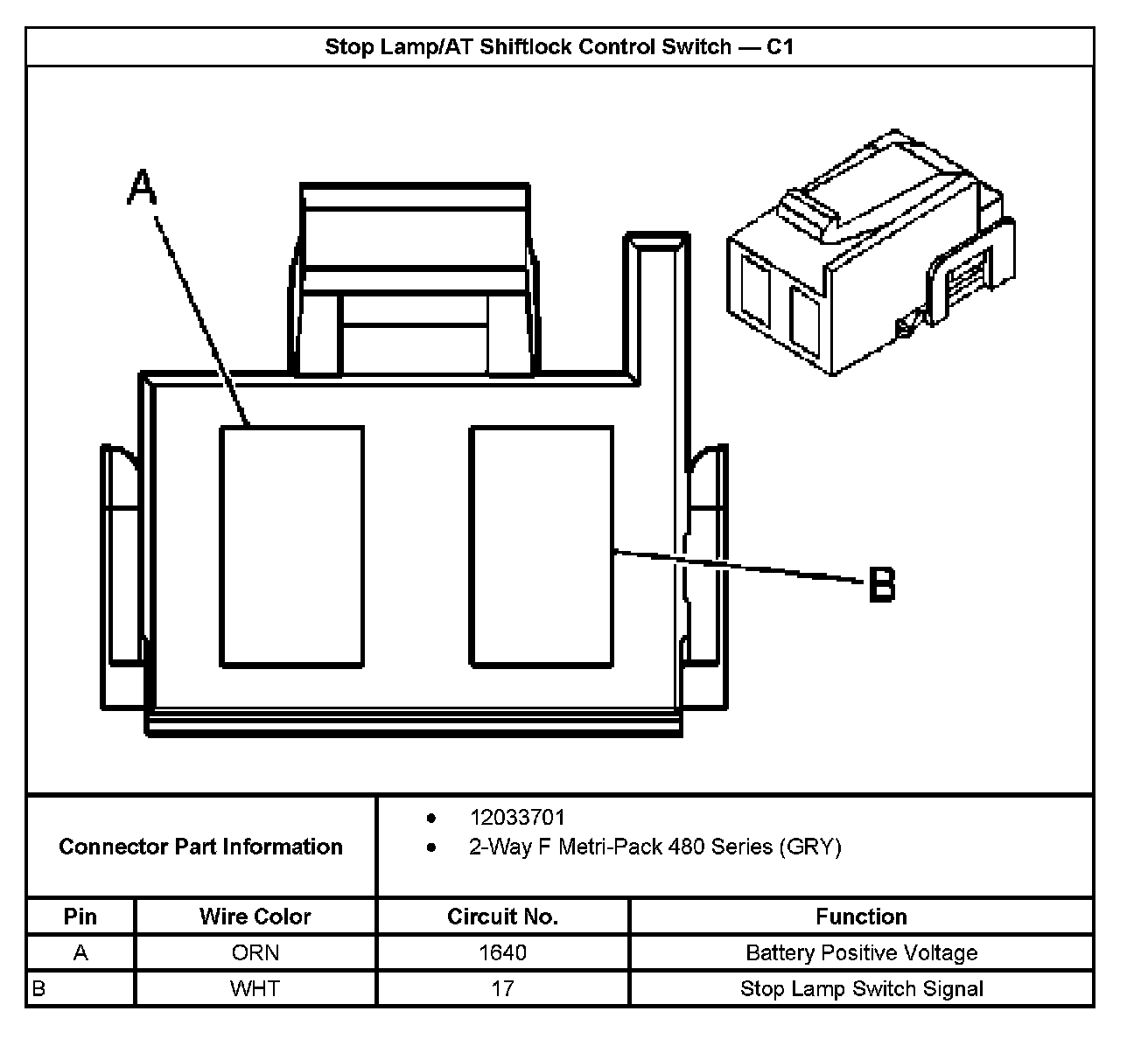 Stop Lamp/AT Shiftlock Control Switch - C1: