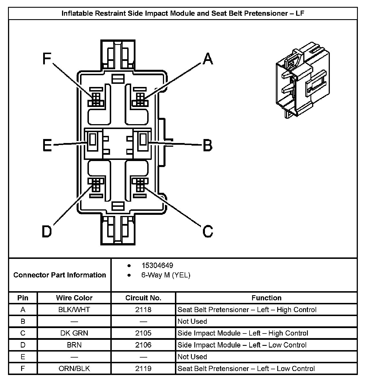 Inflatable Restraint Side Impact Module and Seat Belt Pretensioner - LF: