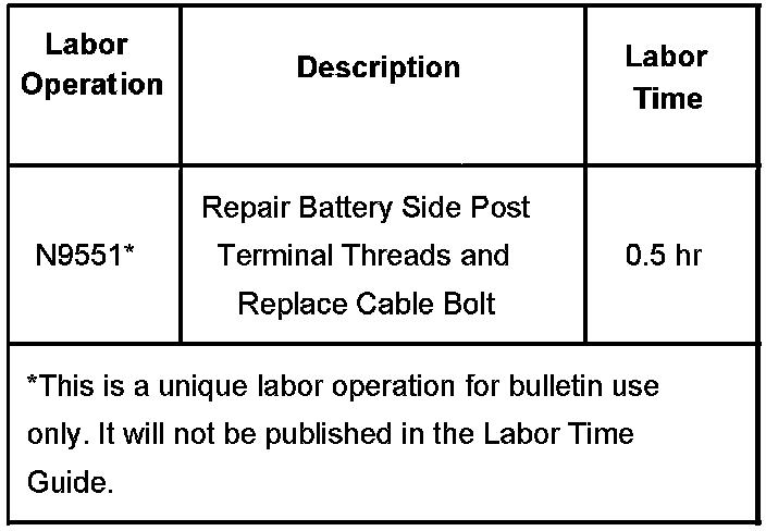 The battery cable bolt is serviced separately from the cable and is available from your Parts Department. Be sure to use the correct bolt.