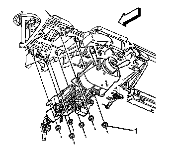 12. Remove the steering column mounting nuts (1) that secure the steering column to the instrument panel.