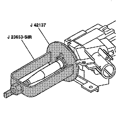 4. Remove J 23653-SIR and J 42137 from the steering shaft assembly.