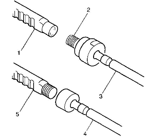 12. Rotate the inner tie rod housing (2) counterclockwise, while holding the rack stationary, until the inner tie rod (1) separates from the rack (5).