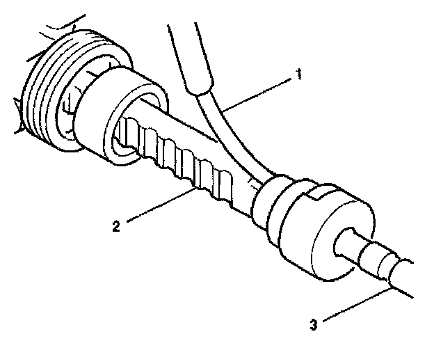 14. Slide the shock dampener (2) over the inner tie rod housing (3) until the front lip of the shock dampener (2) bottoms against the inner tie rod housing (3).