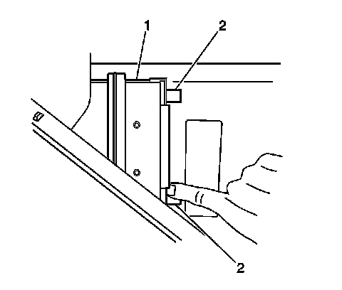 5. With the locking tabs (2) depressed, slide the ESC module (1) towards the center of the vehicle.