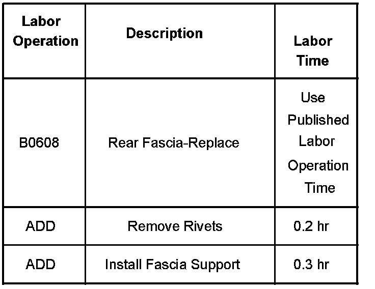 The repair of this condition will require replacing the rear fascia and using the service procedure provided in this bulletin. The purpose of the service procedure is to provide room for the fascia to expand and contract by enlarging the fascia attachment points. This procedure was developed in order to minimize the possibility of the new rear fascia becoming distorted or warped.