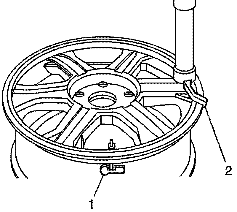 9. Apply GM P/N 12345884 (in Canada, P/N 5728223) or equivalent to the tire bead and the wheel rim.