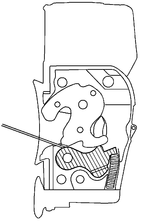 2. Allow the latch to completely thaw and apply compressed air for two seconds to the latch to force out any moisture. Refer to the above illustration (slashed area) for the location. Spray GM Super Lube(R) on BOTH sides of the latch detent lever for approximately two to three seconds. Refer to the above illustration (slashed area) for the lube location. Repeat for all door latches. Operate the door latch several times to spread the lubricant on all surfaces.