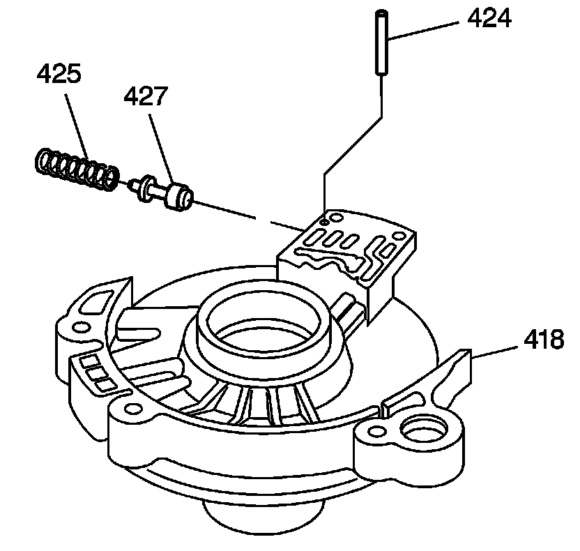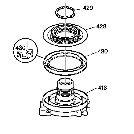 2. Remove the return spring and retainer assembly (428), and remove the piston assembly (430).