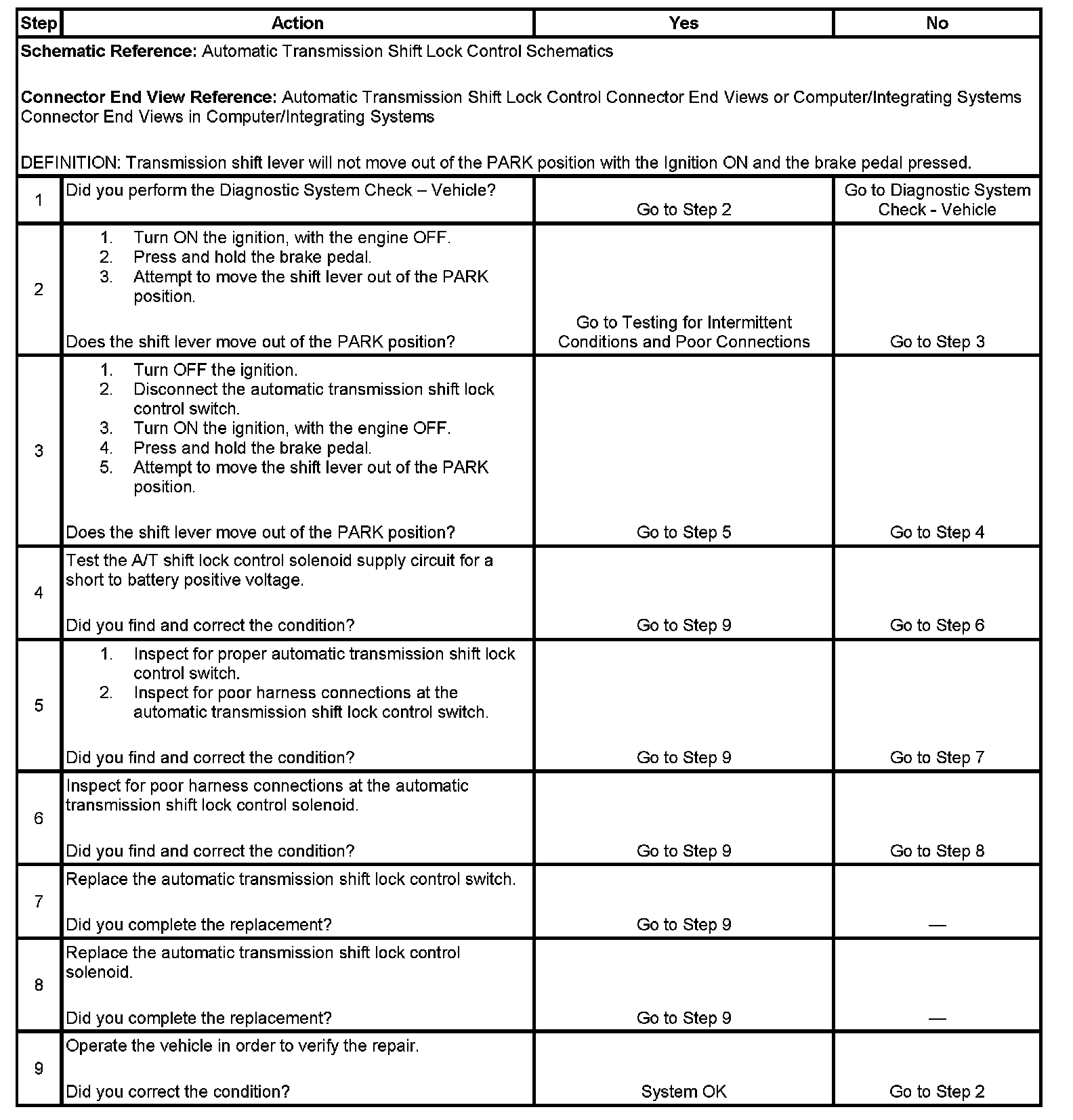 Shift Lever Does Not Move With Brake Pedal Depressed (Column Shift)