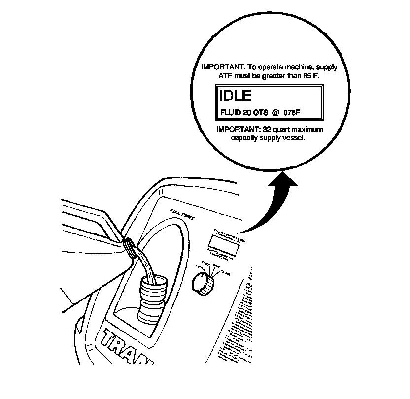 1. From the machine display, identify the temperature of the automatic transmission fluid that is stored in the supply vessel of J 45096.
