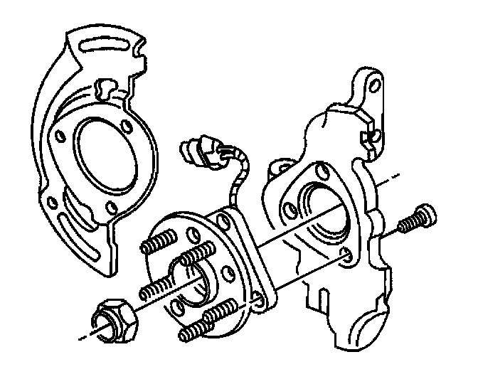 4. Install the wheel bearing and hub mounting bolts.