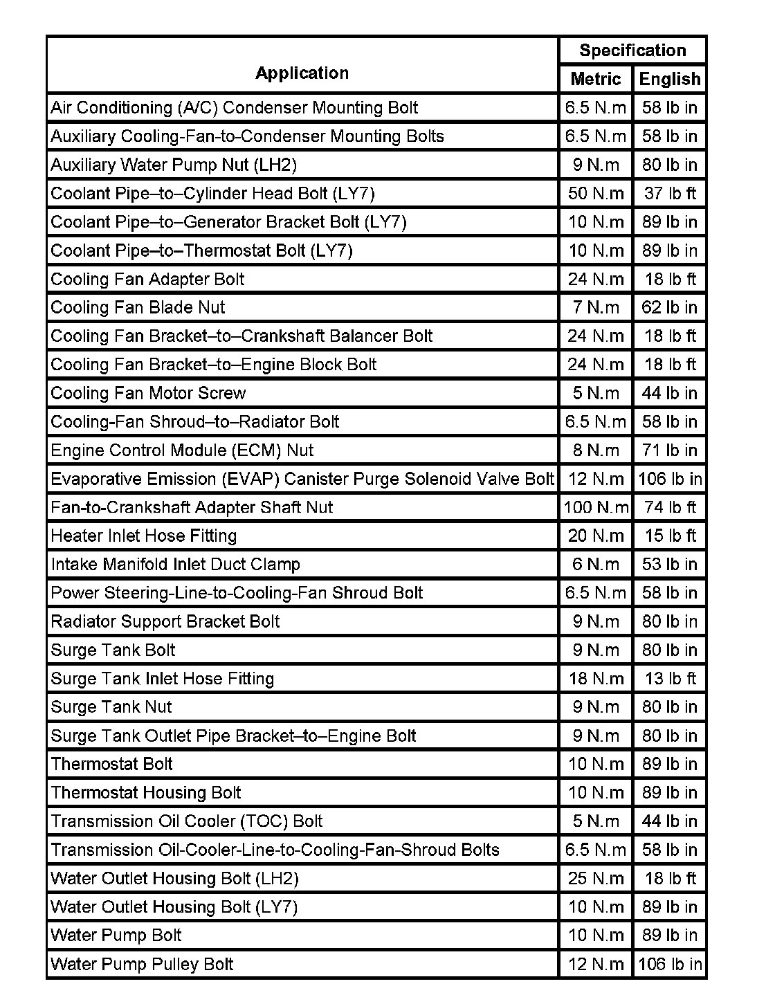 Fastener Tightening Specifications: