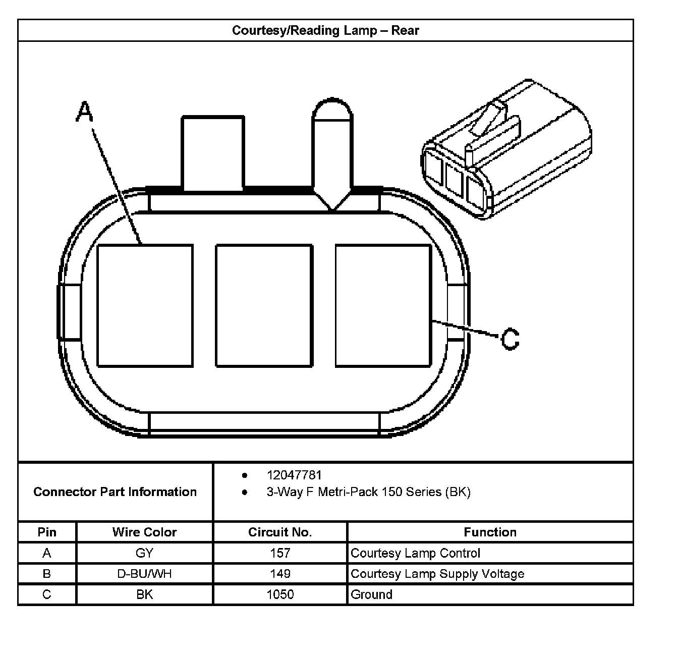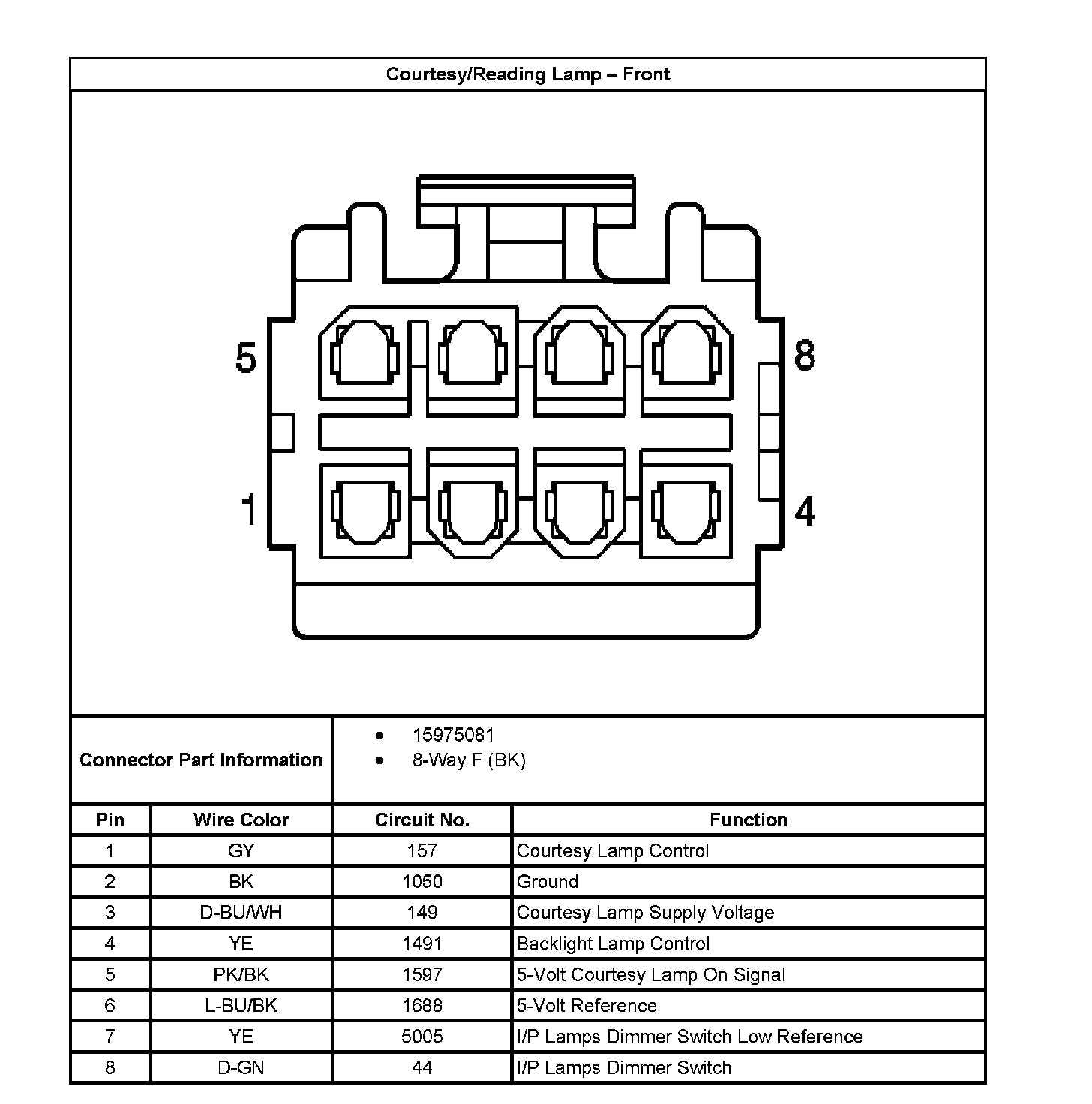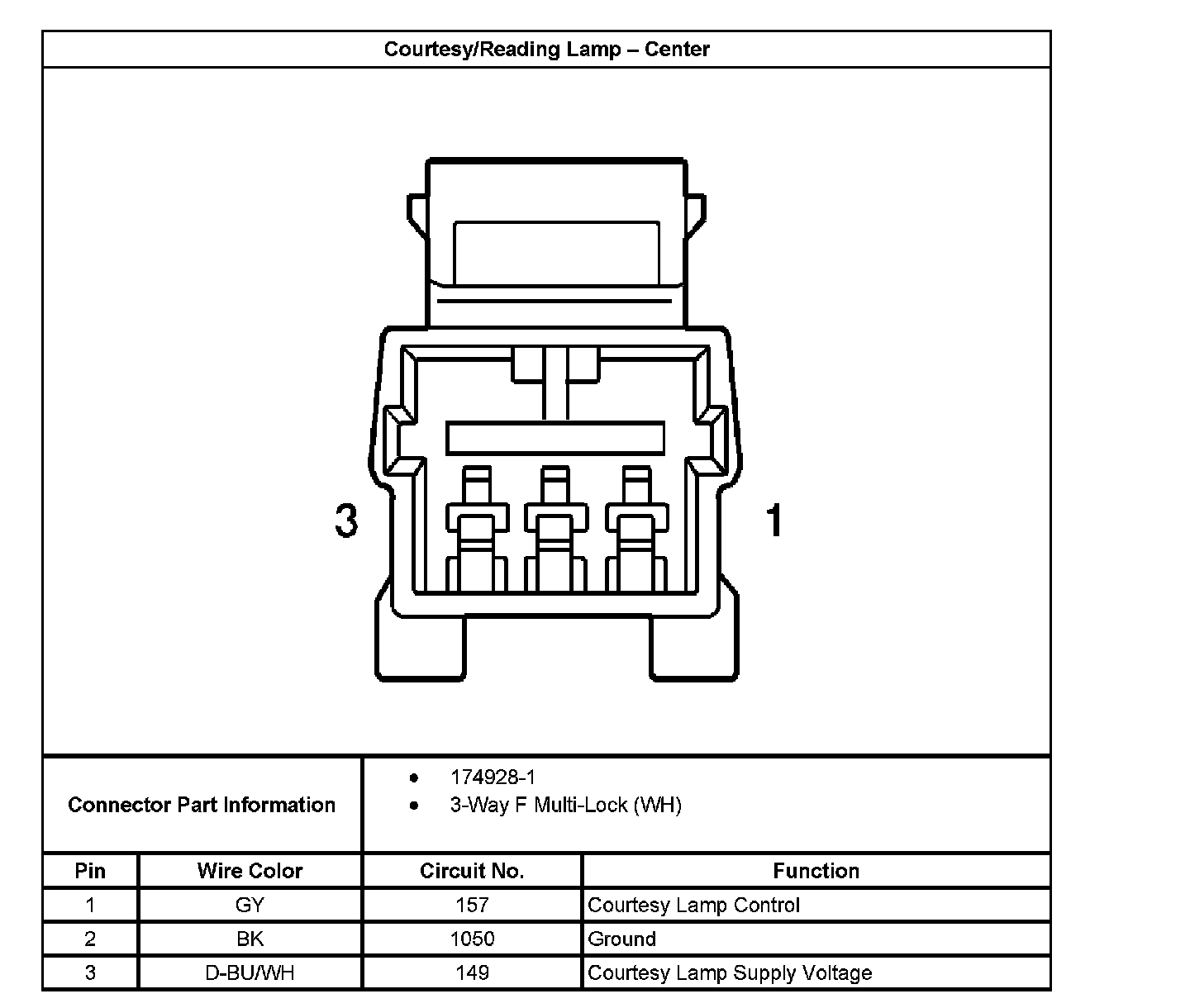 Courtesy/Reading Lamp - Rear: