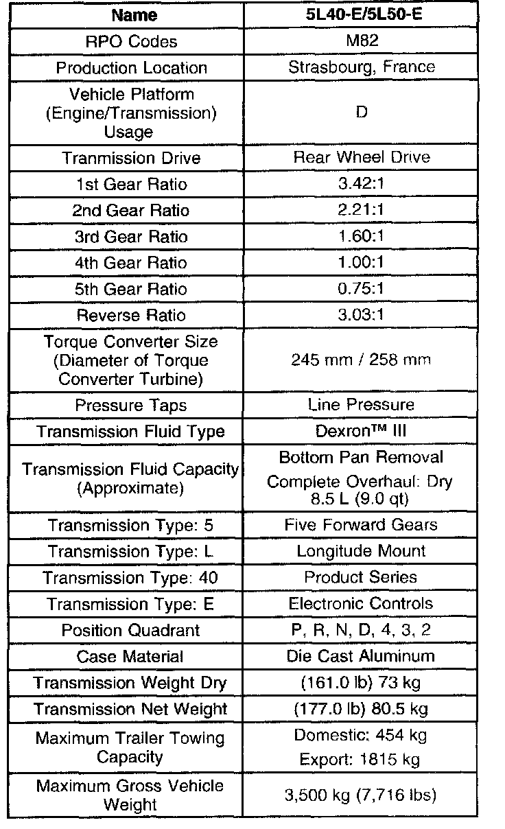 Transmission General Specifications