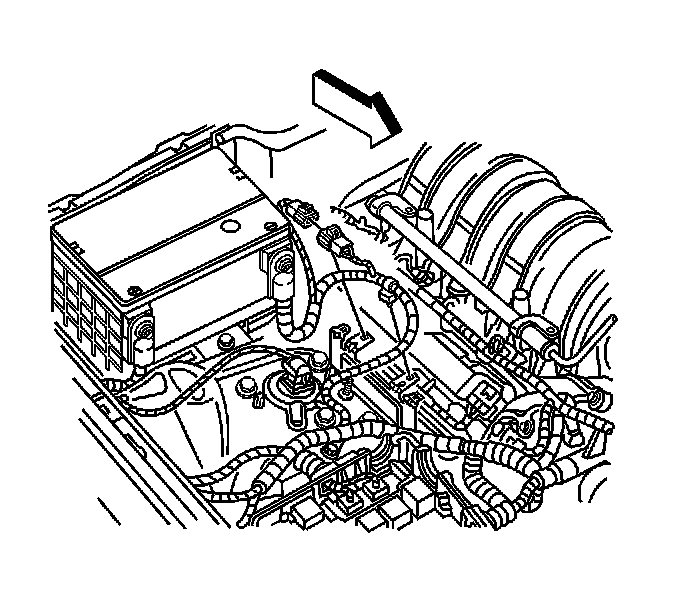 7. Remove the bolt securing the battery negative cable to the engine block.