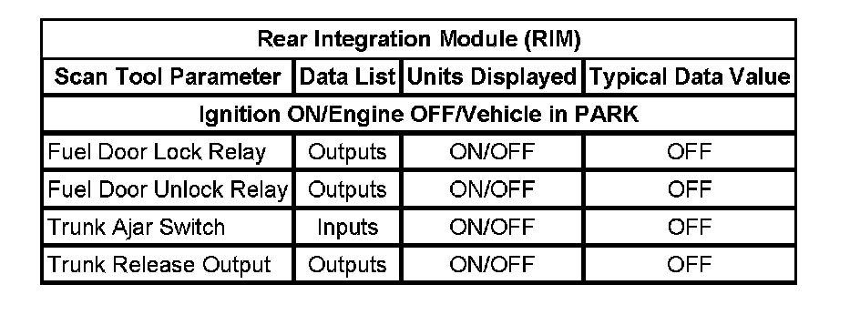 Scan Tool Data List - Rear Integration Module (RIM)