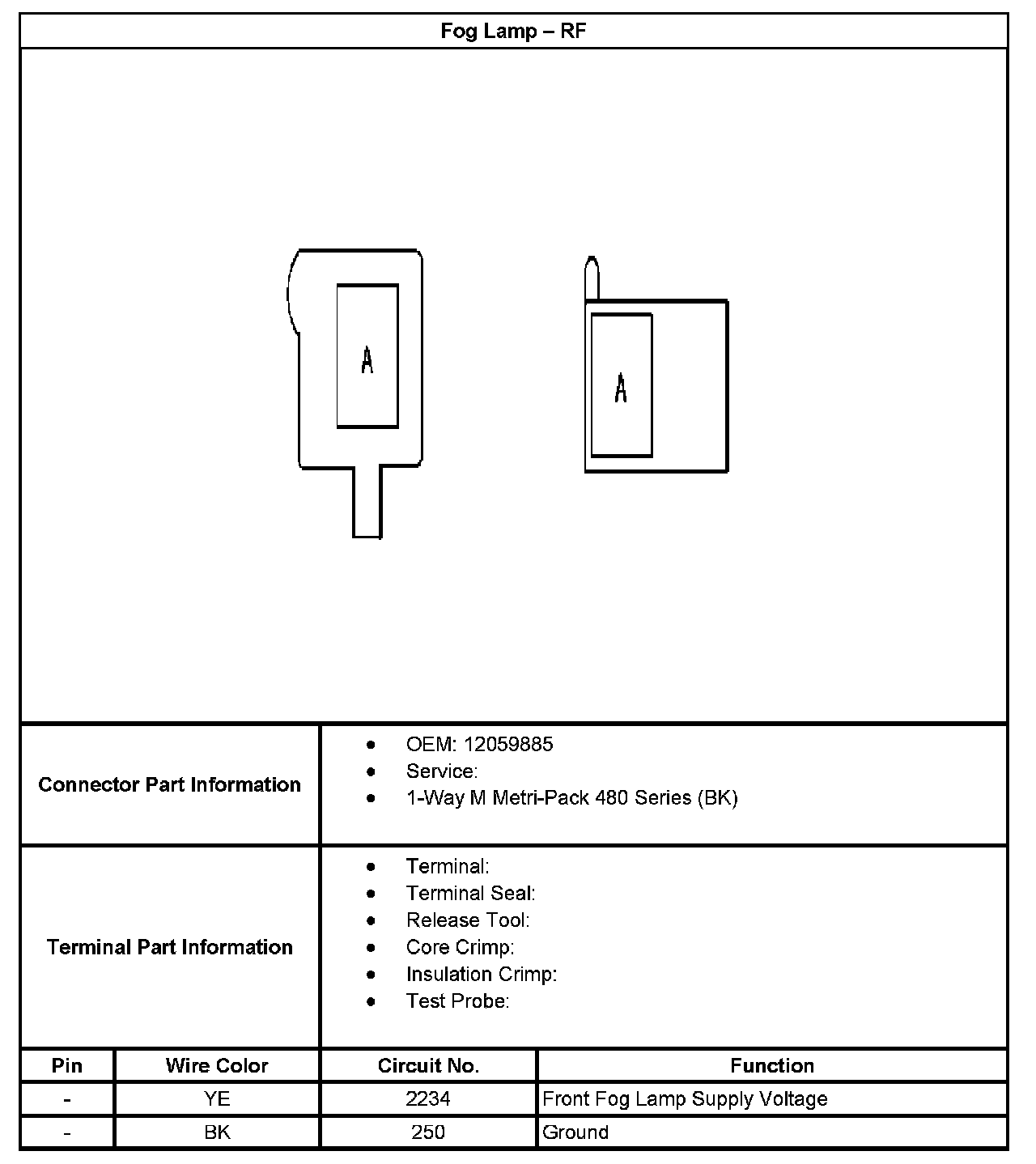Fog Lamp - RR (With RPO Code TT7/TT8):