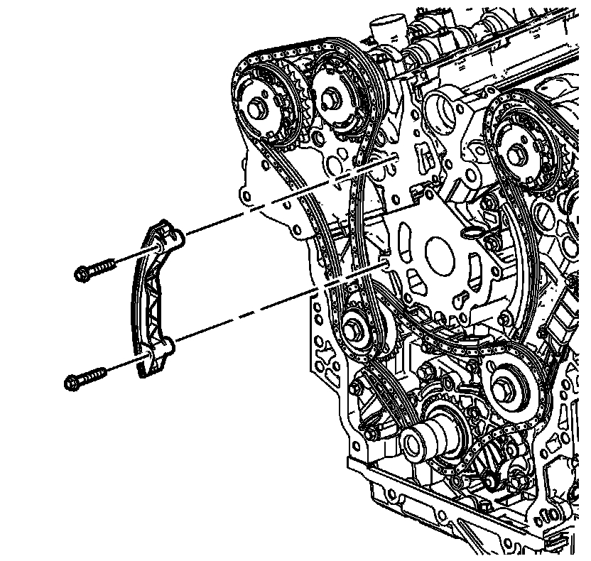 1. Install the right bank secondary camshaft drive chain guide. 126. Secondary Timing Chain Guide Installation - Right