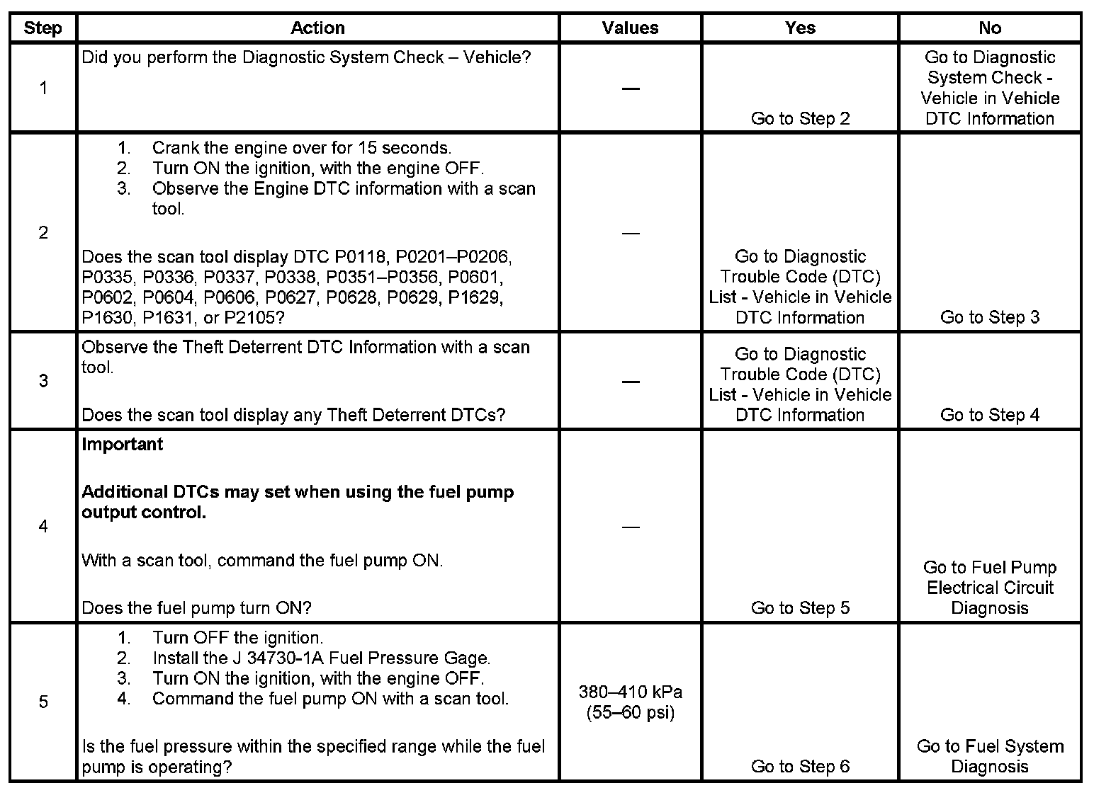 The Engine Cranks but Does Not Run diagnostic table is an organized approach to identifying a condition that causes an engine not to start. The Engine Cranks but Does Not Run diagnostic table directs the service technician to the appropriate system diagnosis.