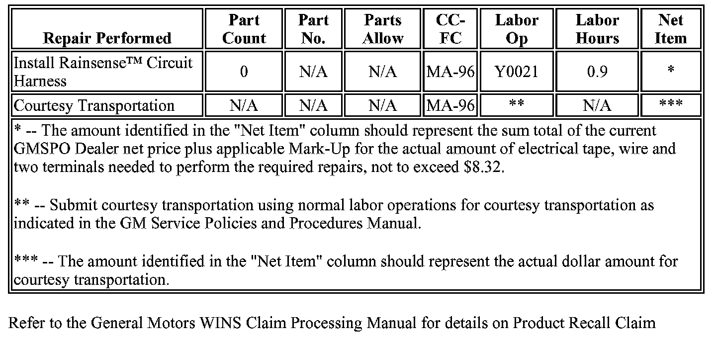 Refer to the General Motors WINS Claim Processing Manual for details on Product Recall Claim Submission.