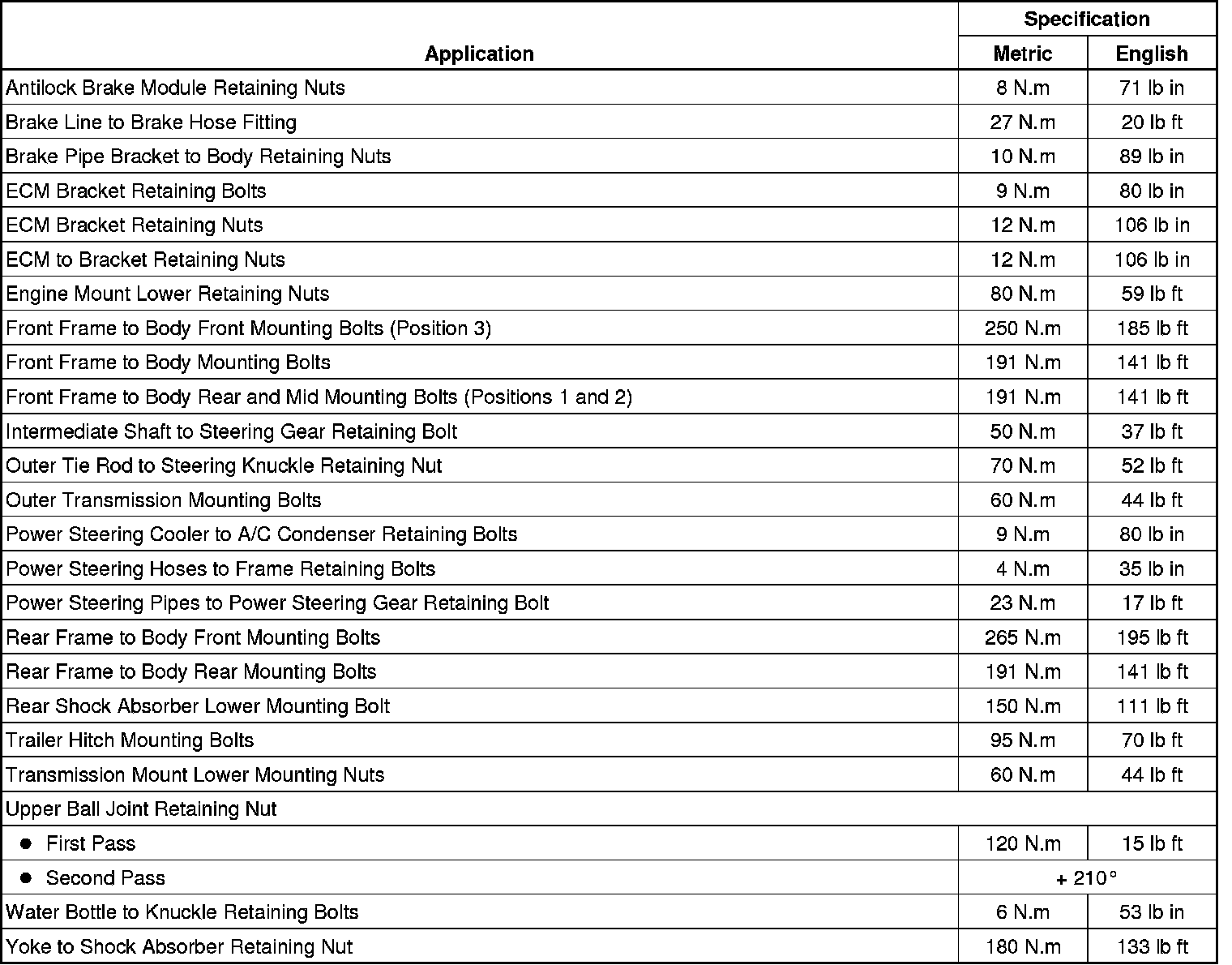 Fastener Tightening Specifications