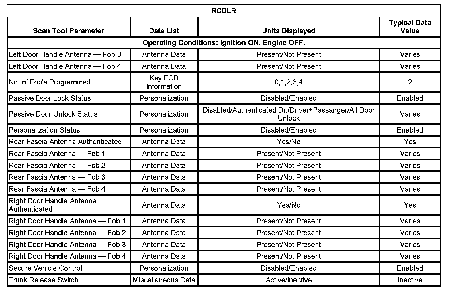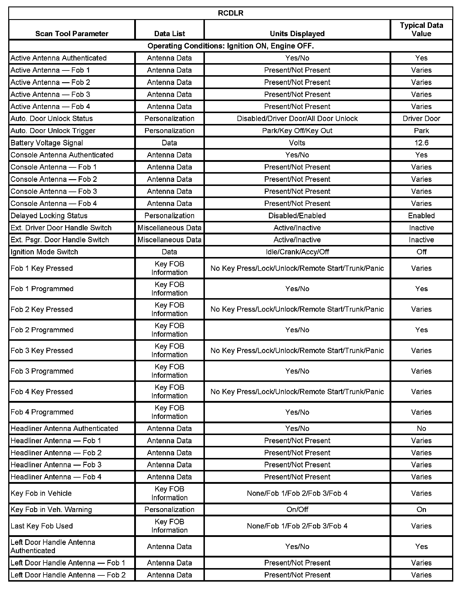 Scan Tool Data List