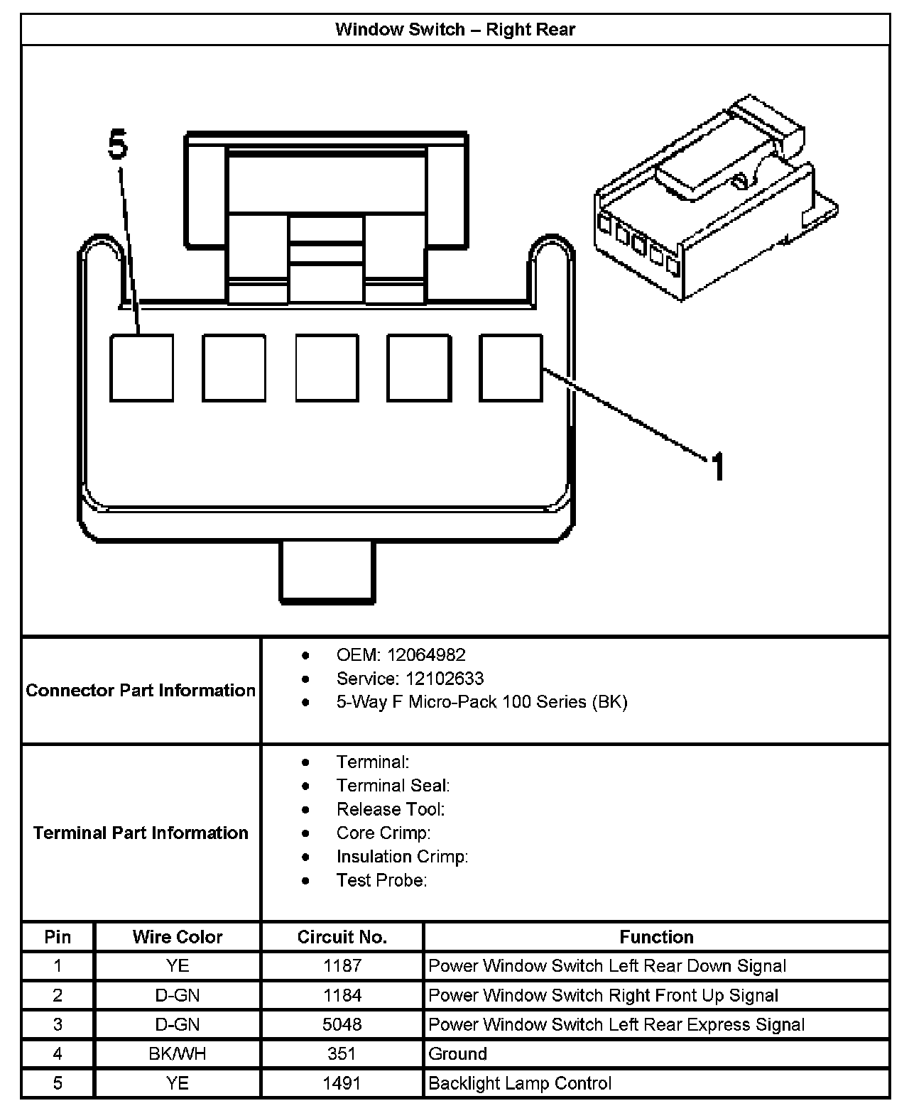 Window Switch - Right Rear: