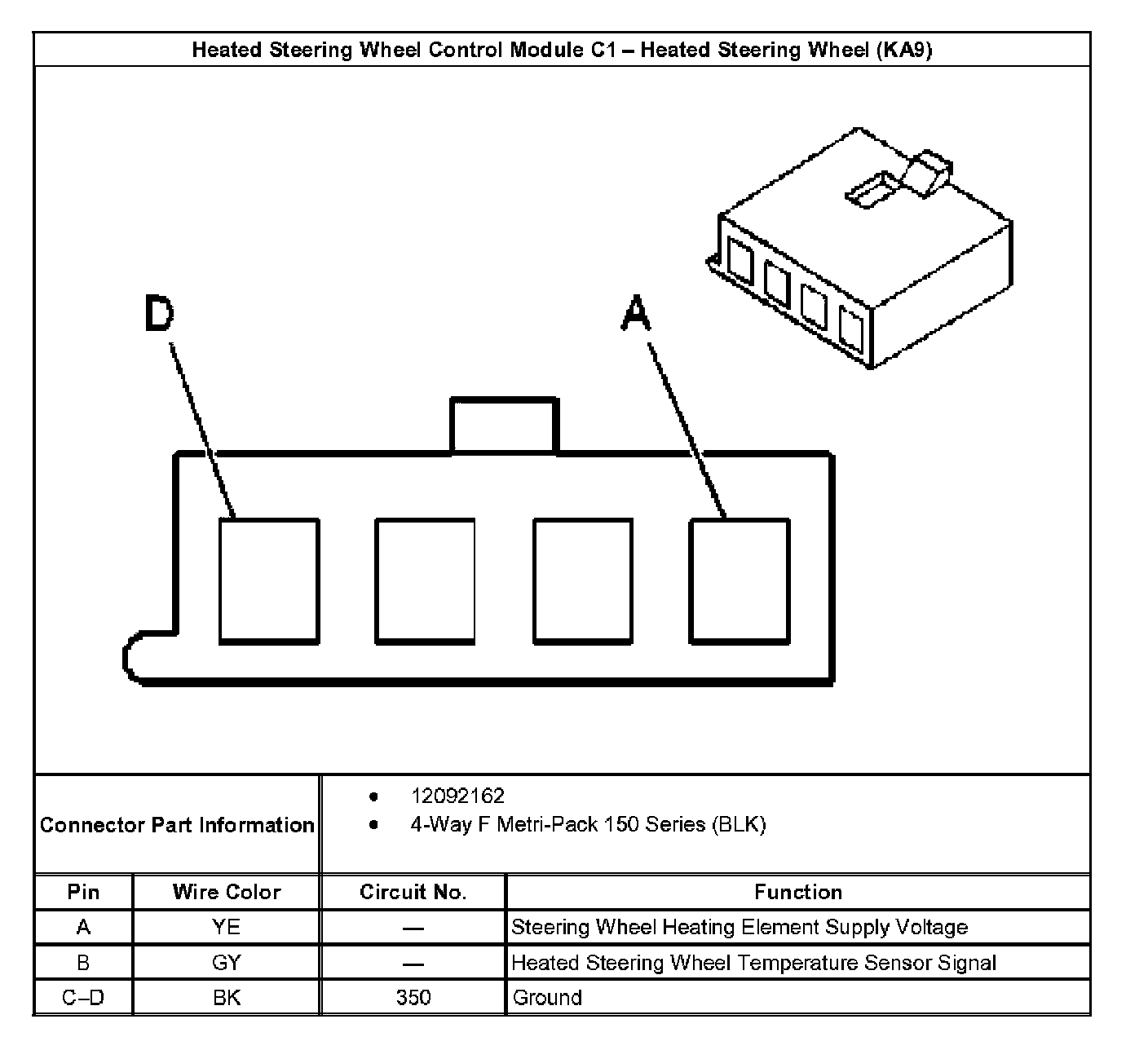 Heated Steering Wheel Control Module C1 - Heated Steering Wheel (KA9):