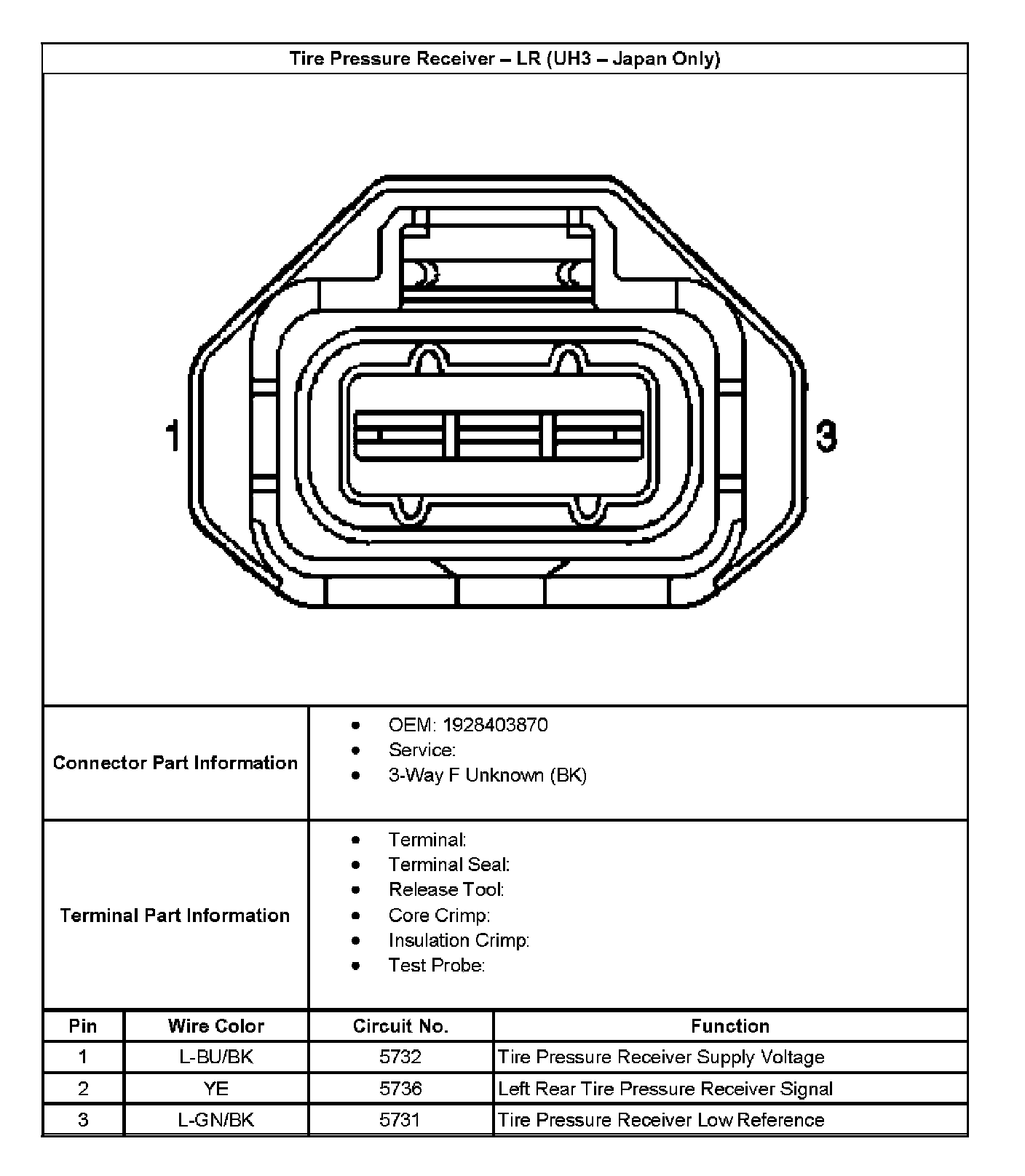 Tire Pressure Receiver - RR (UH3 - Japan Only):