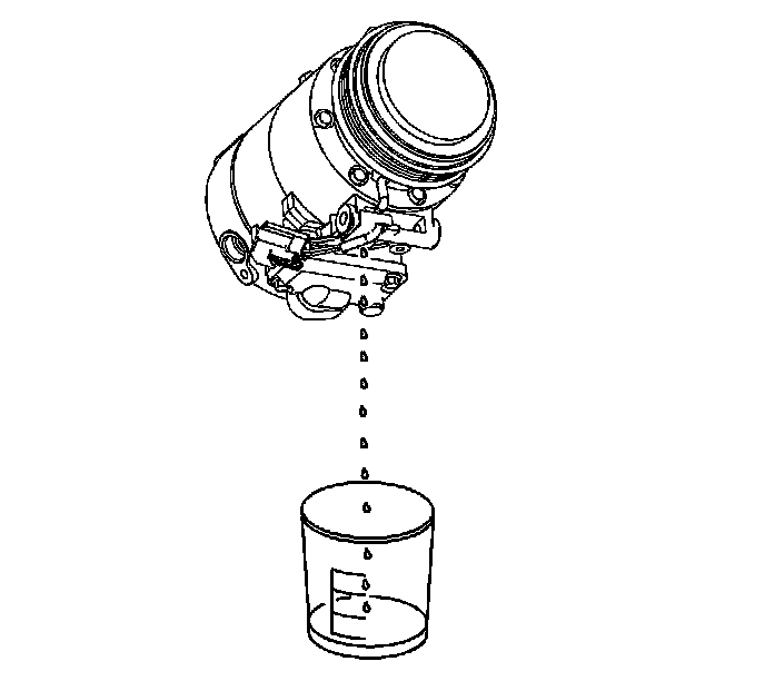 4. Measure and record the amount of oil drained from the removed compressor. This measurement will be used during installation of the replacement compressor.