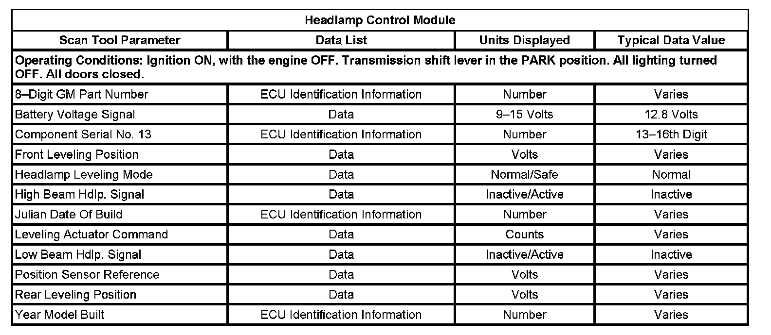 Scan Tool Data List - Headlamp Control Module