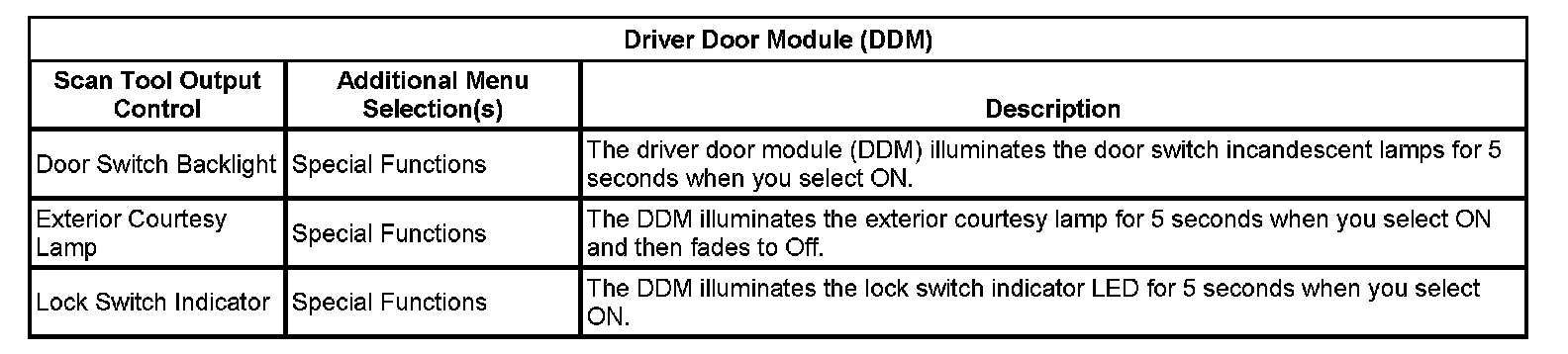 Scan Tool Output Controls - Driver Door Module (DDM)