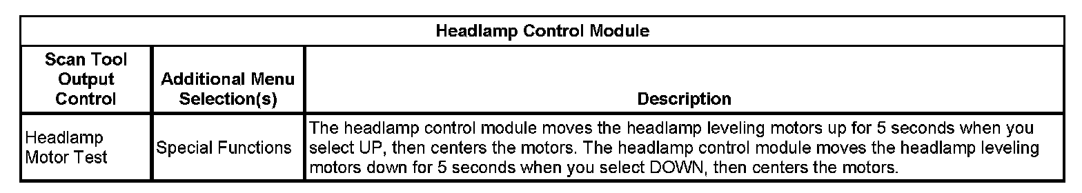Scan Tool Output Controls - Headlamp Control Module
