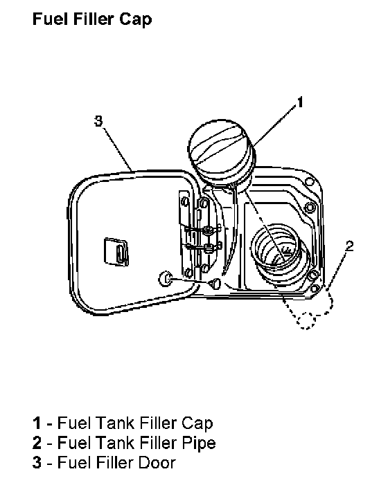 NOTE: Use a fuel tank filler pipe cap with the same features as the original when a replacement is necessary. Failure to use the correct fuel tank filler pipe cap can result in a serious malfunction of the fuel system.