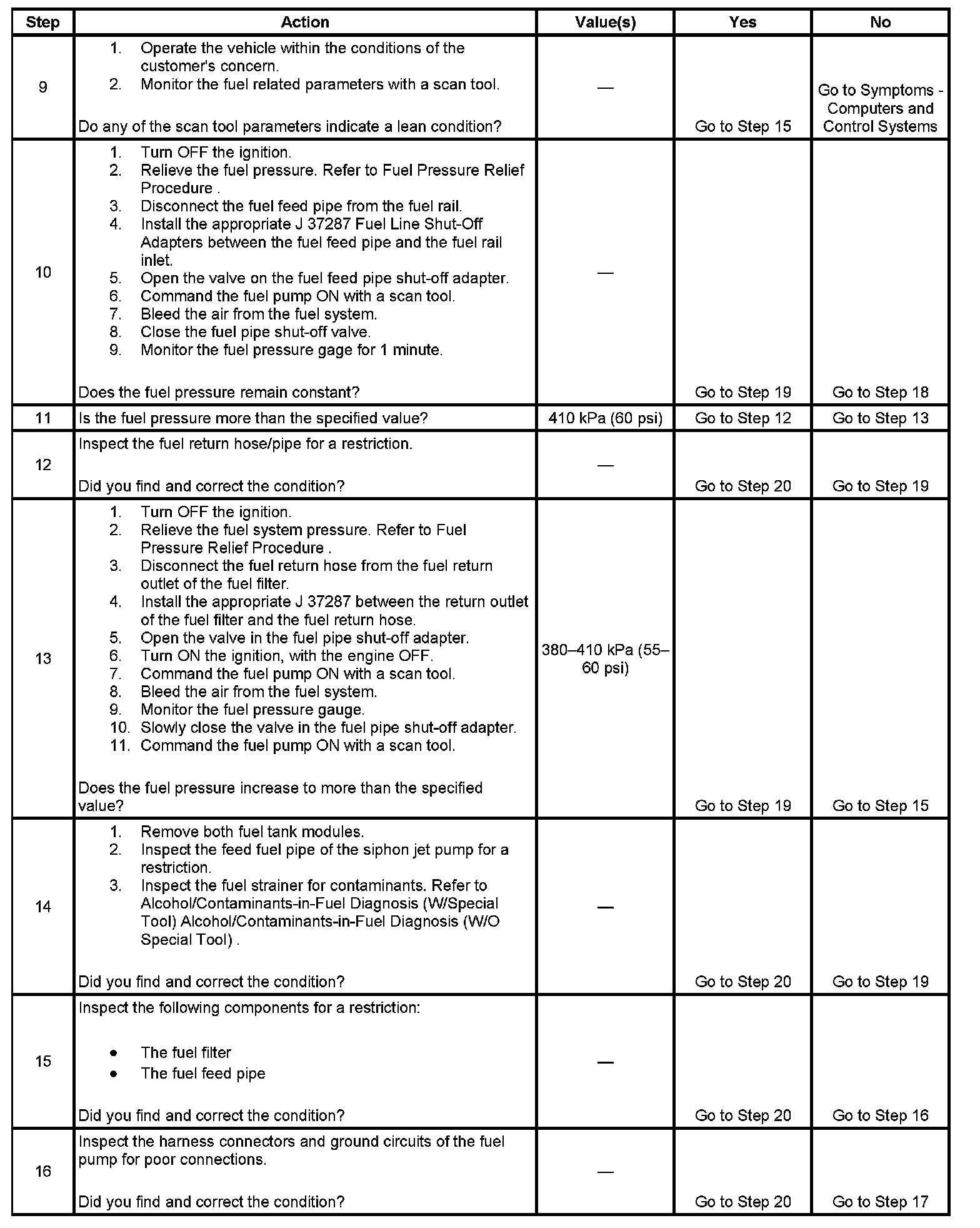 16. This step verifies that a circuit condition is not the cause of a fuel pressure concern. Inspect all fuel pump electrical circuits thoroughly.