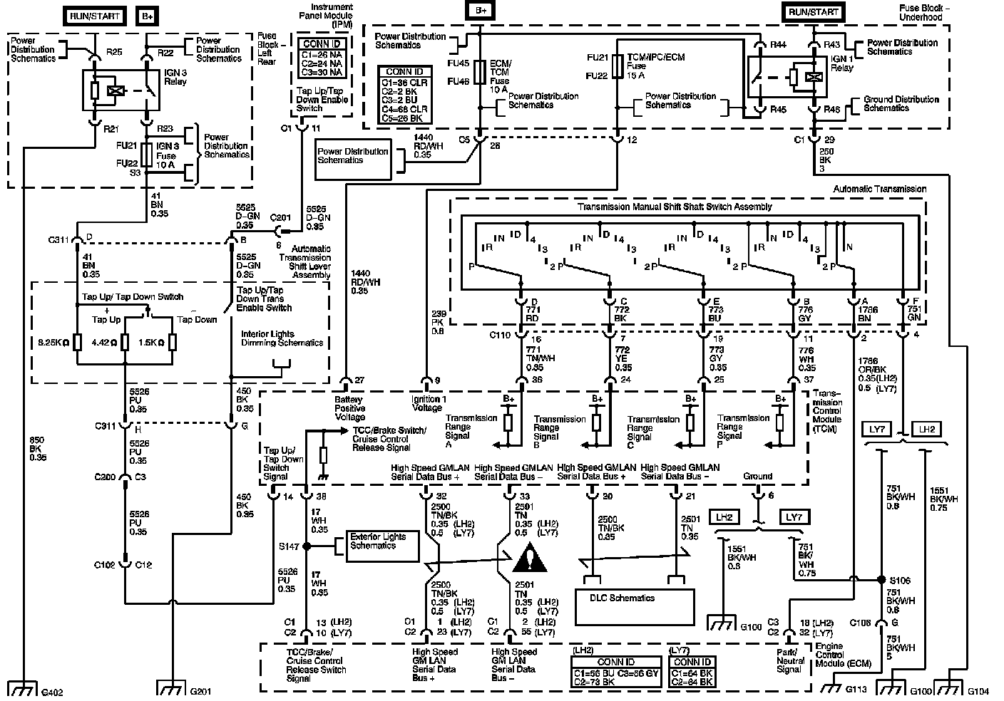 Locations: The locations for connectors, Ground, Splices, and Grommets shown within these diagrams can be found via their numbers at Vehicle Locations. Locations
