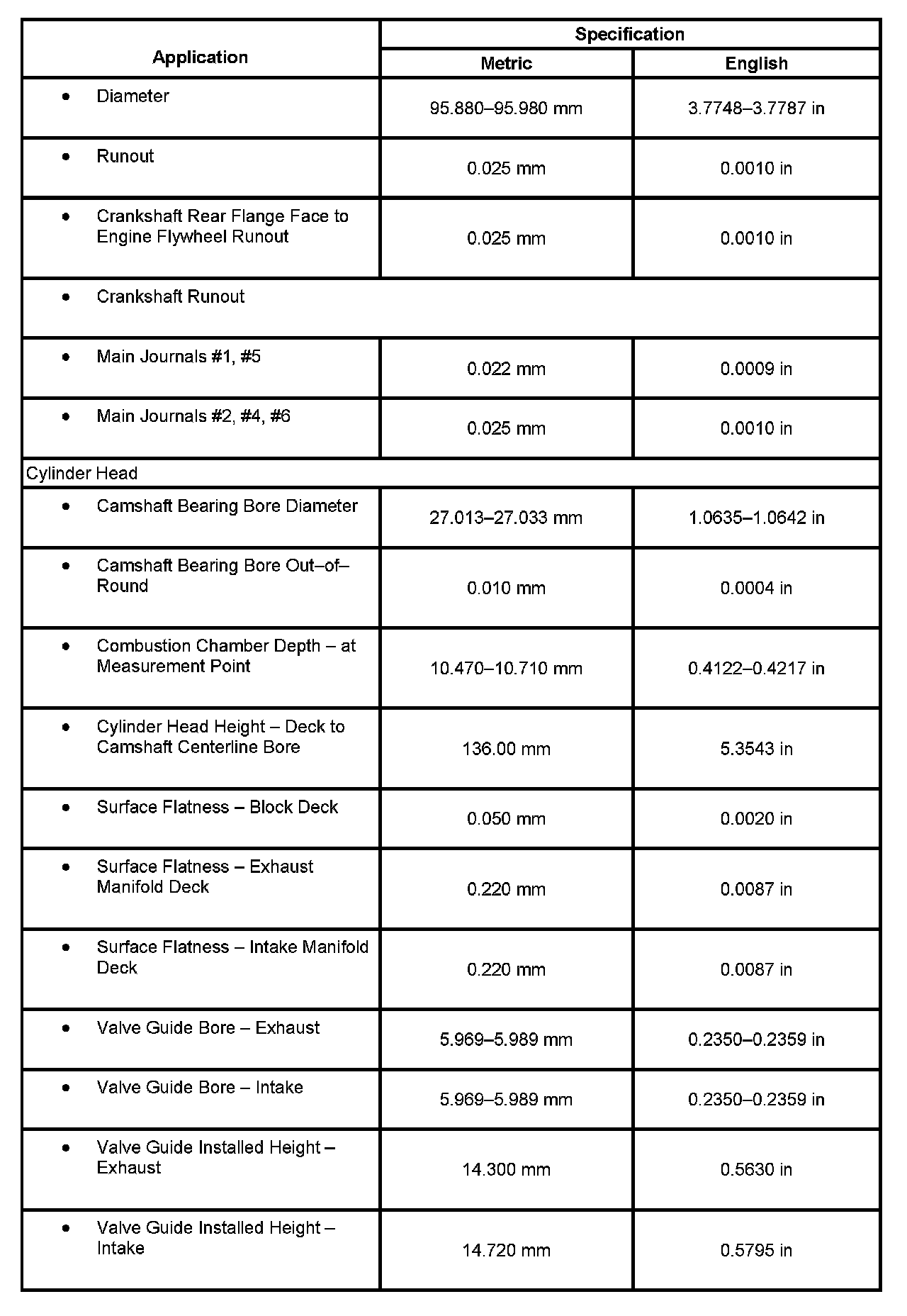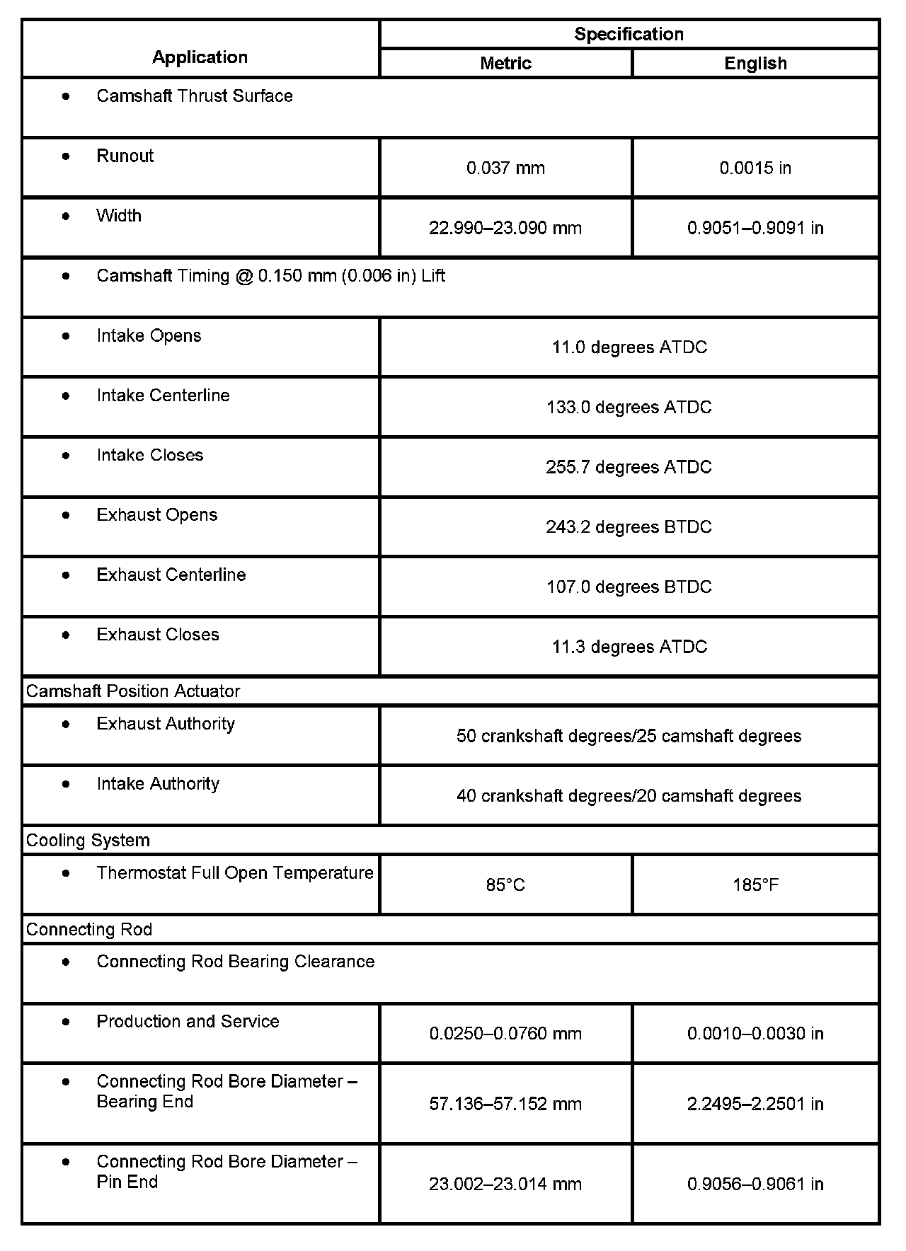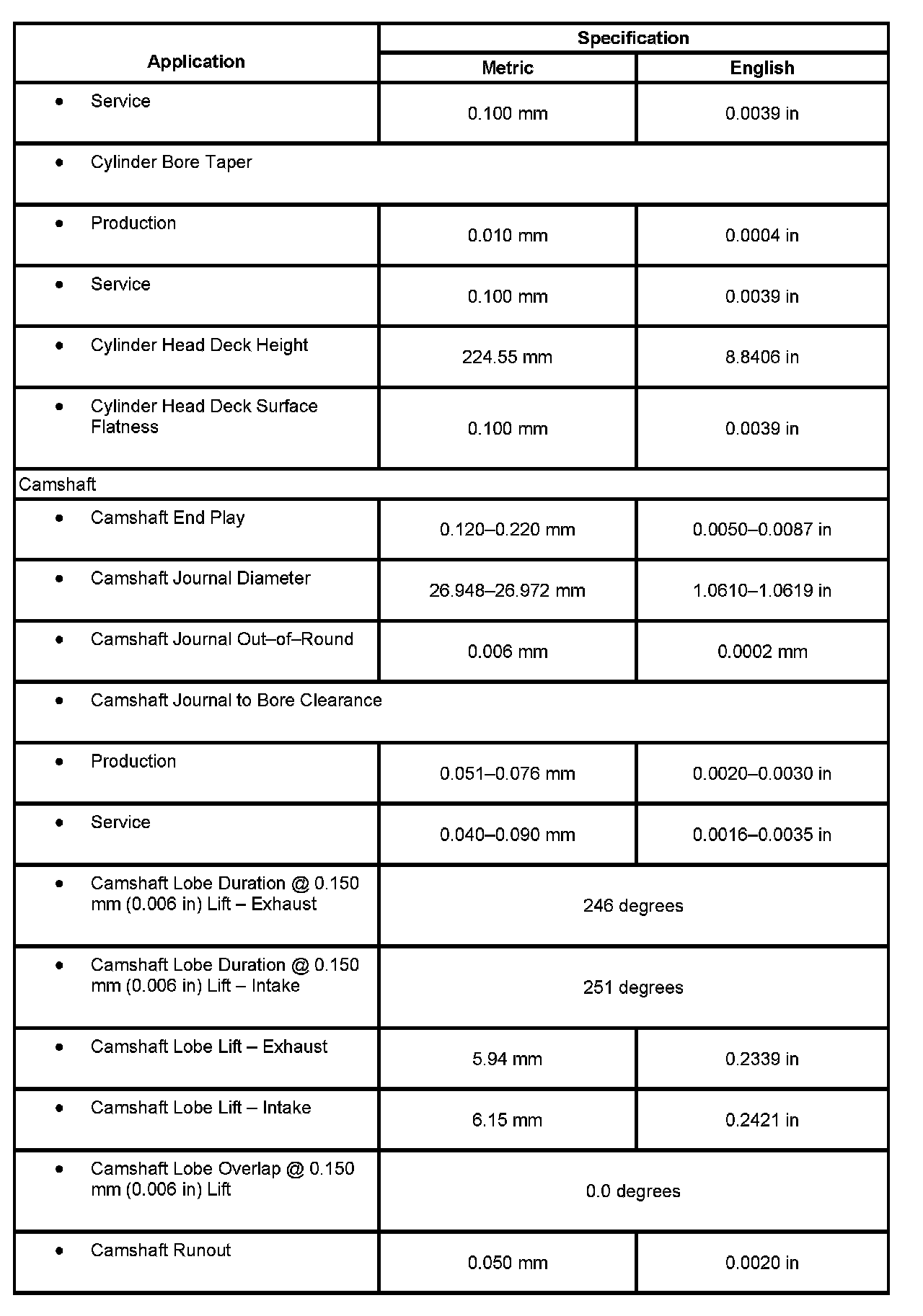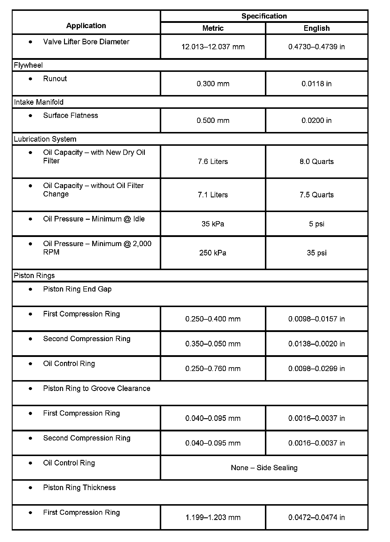 Engine Mechanical Specifications