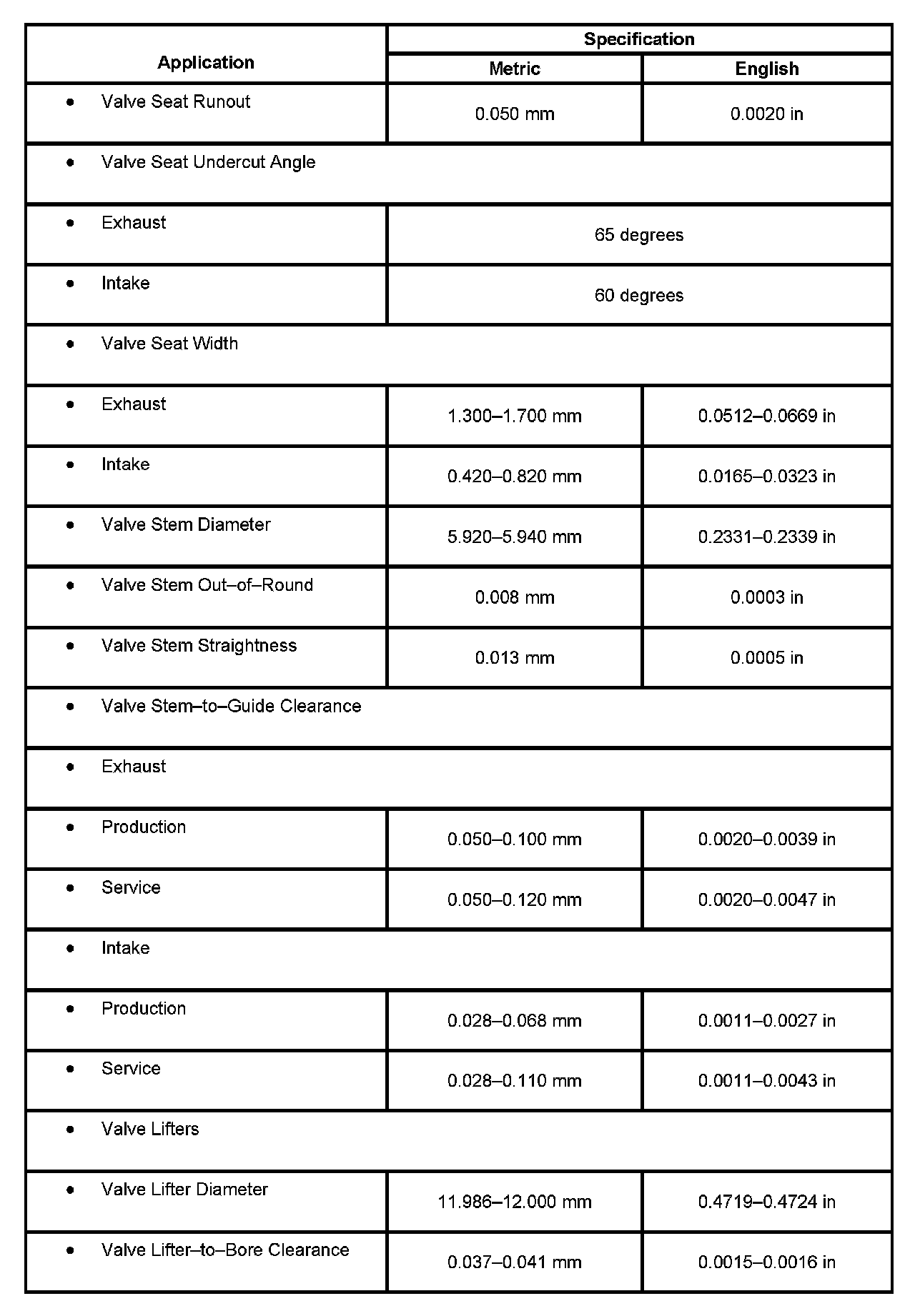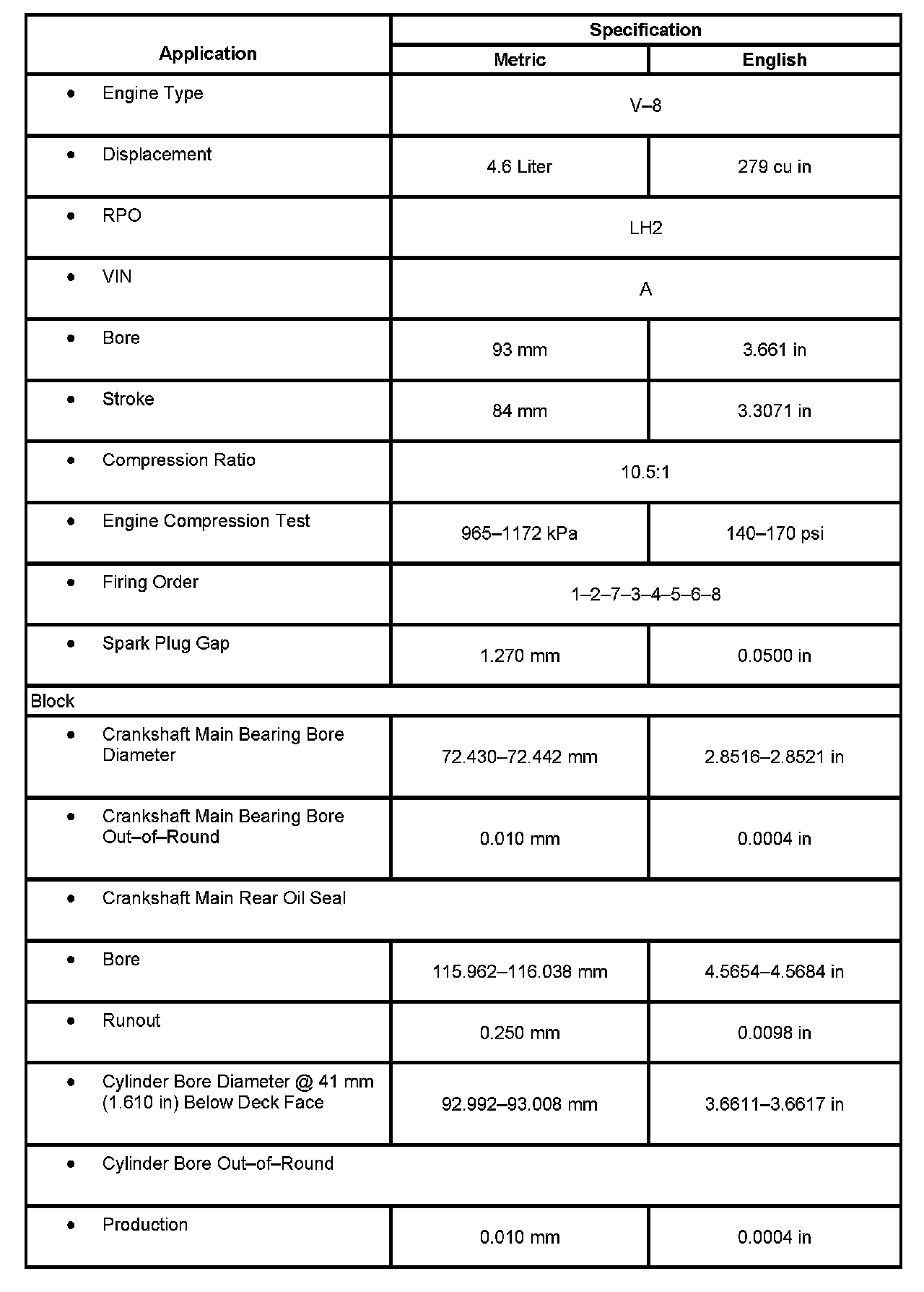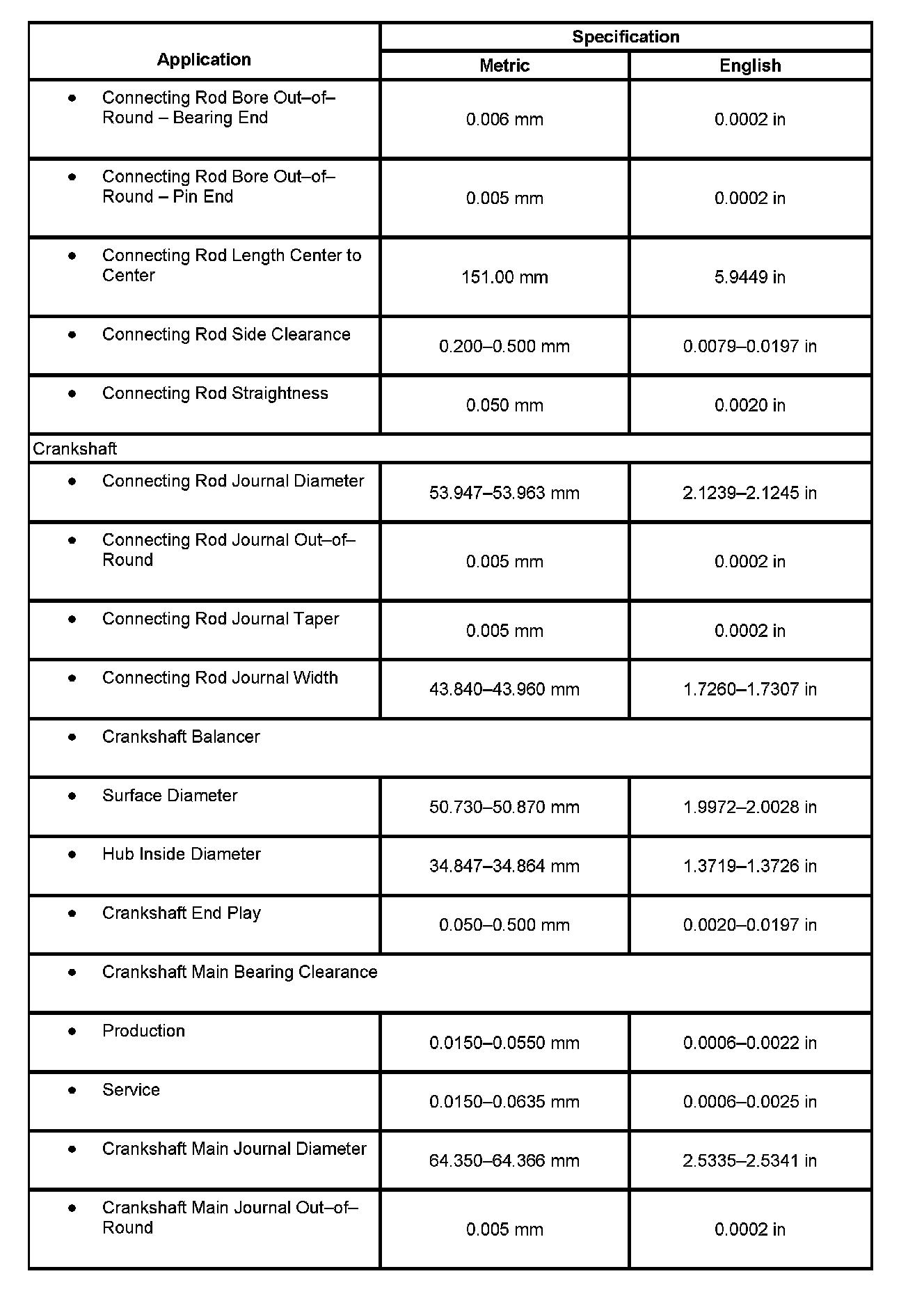 Engine Mechanical Specifications