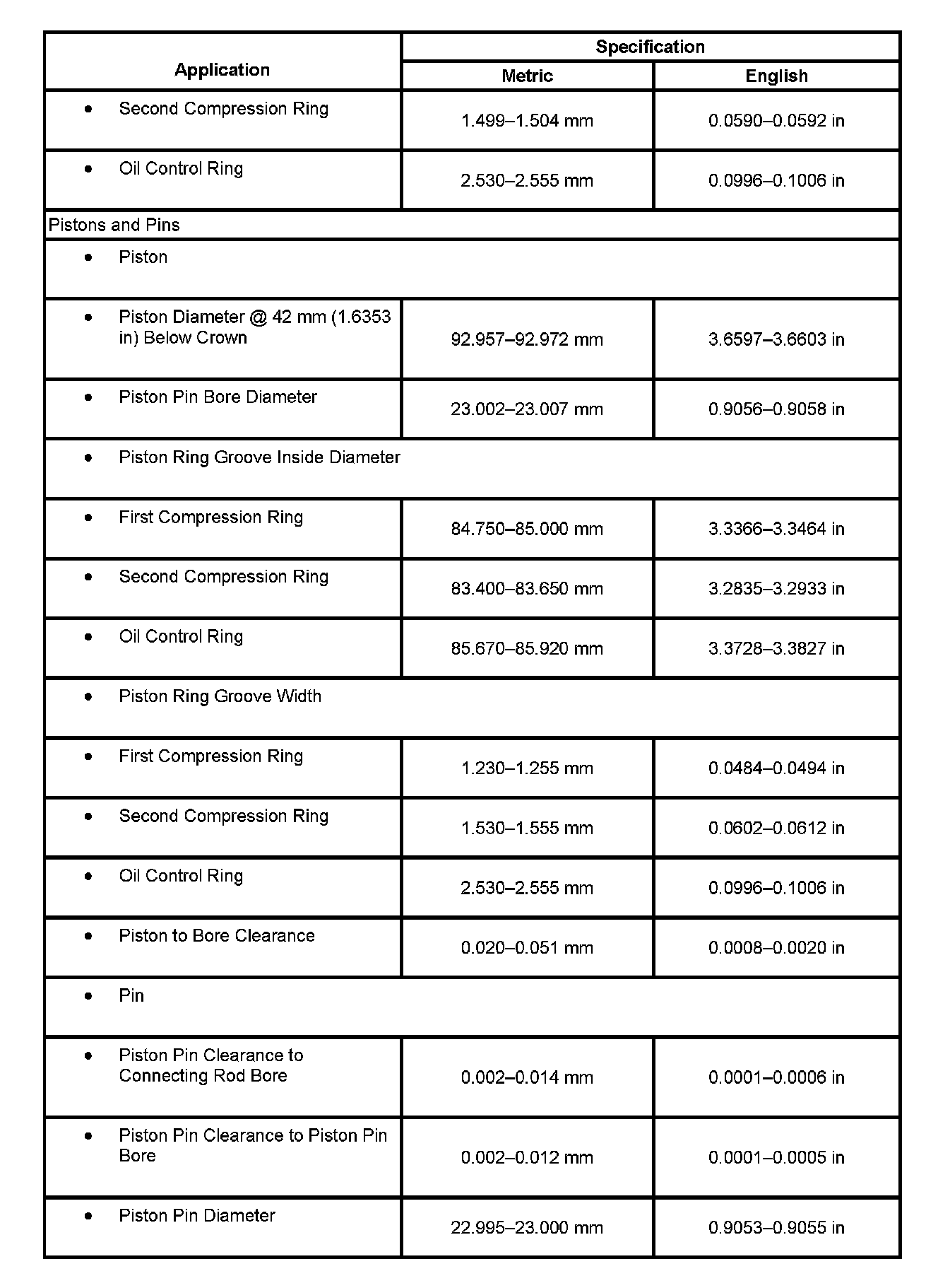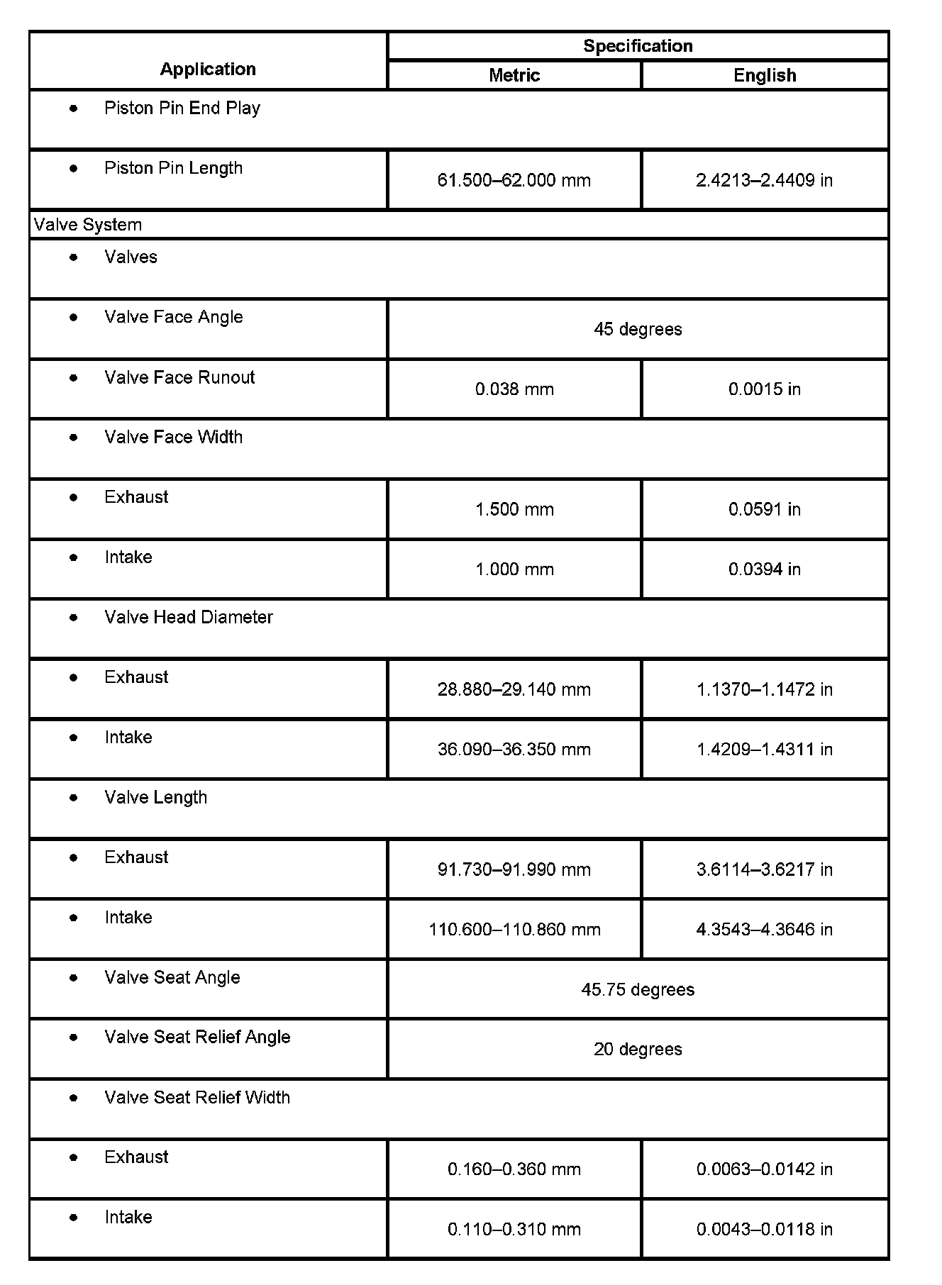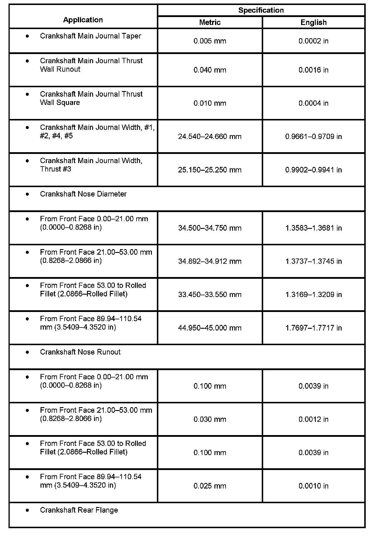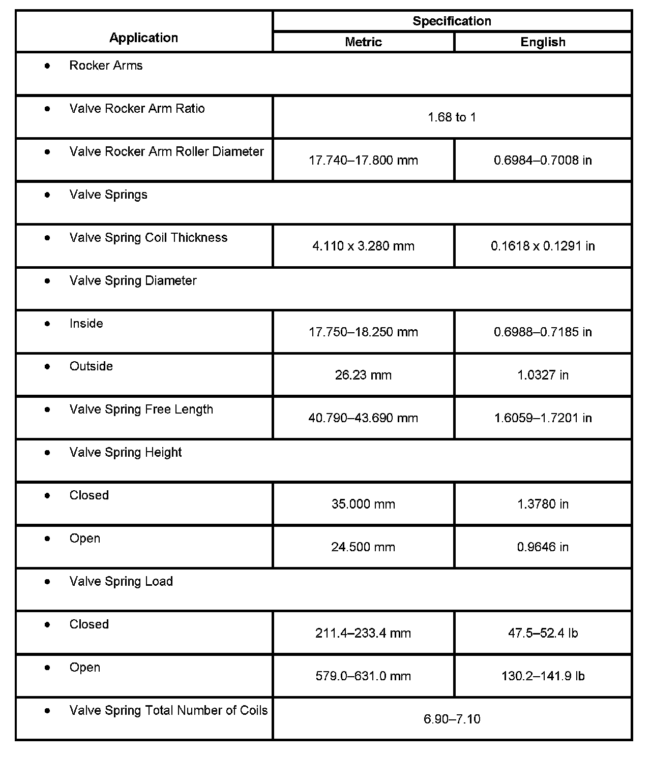 Engine Mechanical Specifications