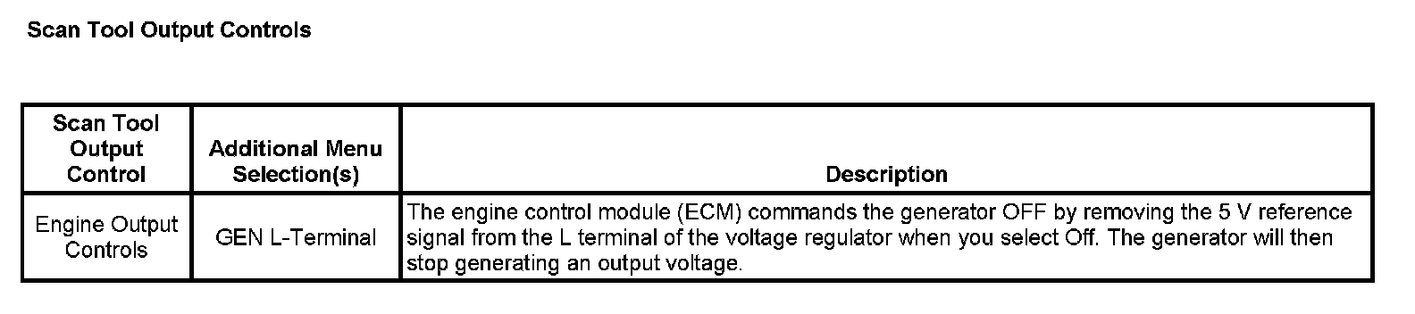 Scan Tool Output Controls: