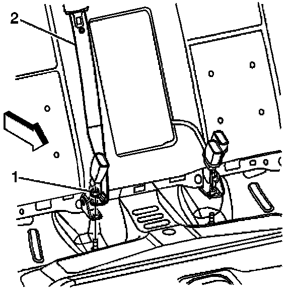 7. Remove the nut (1) attaching the center shoulder bolt to the floor.