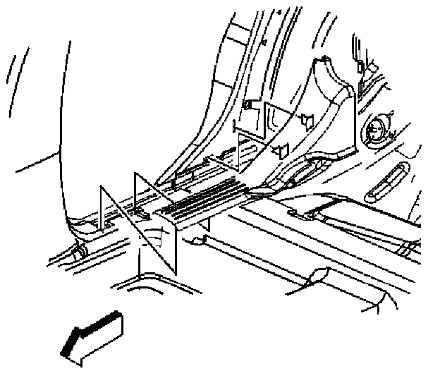 10. Carefully release the retaining clips and remove the right rear carpet retainer.